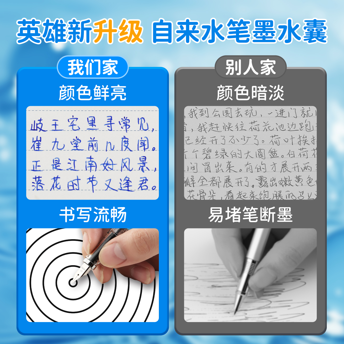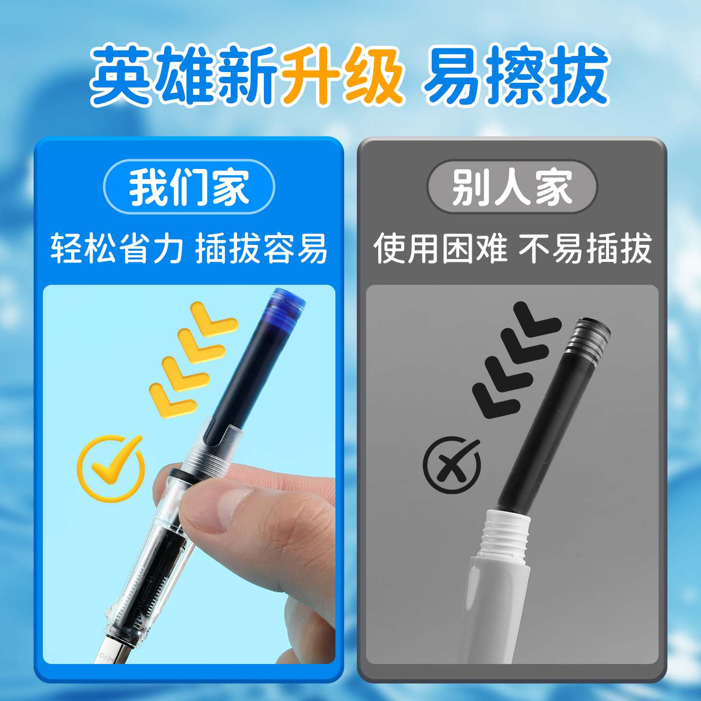 英雄牌钢笔墨囊官方旗舰店墨囊不堵桶装魔力消字笔书写钢笔可替换3.4和2.6口径三年级大容量