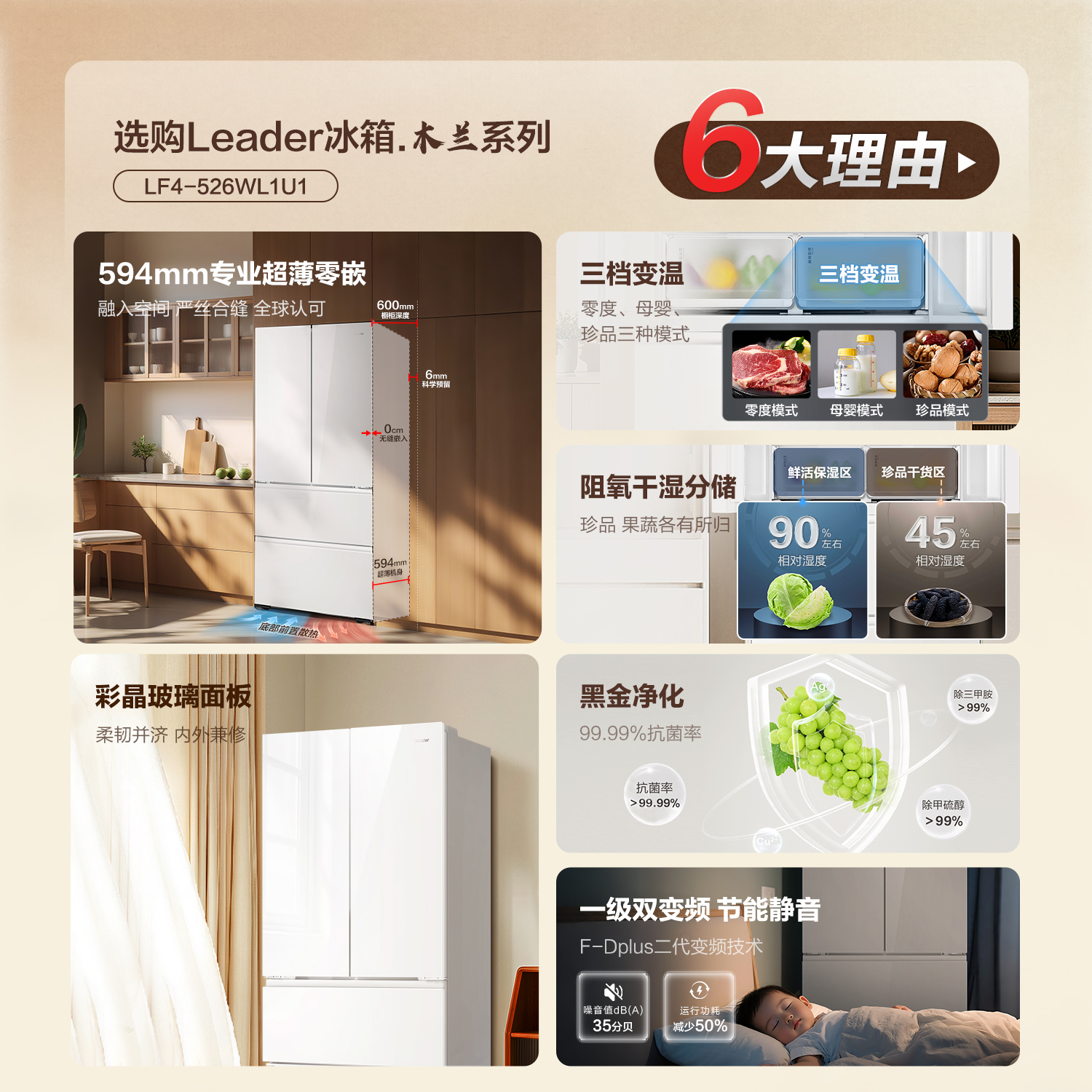政府补贴超薄零嵌海尔统帅526多门对开门四门木兰大容量无霜冰箱