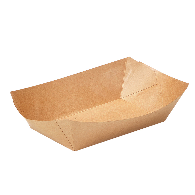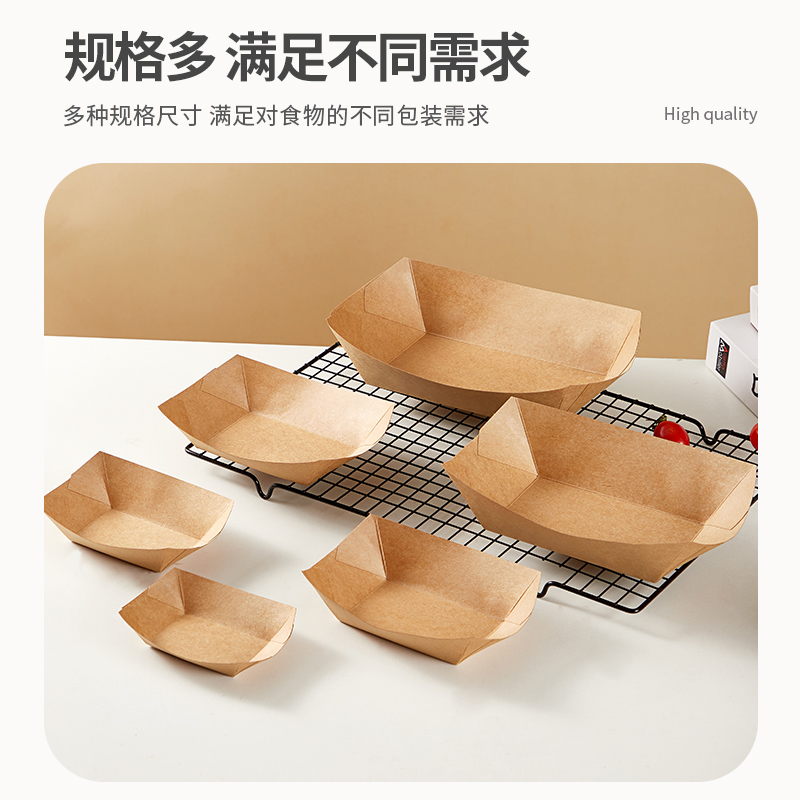 一次性免折叠牛皮纸船盒敞口托盘小吃烧烤餐盘薯条炸鸡烤肠打包盒