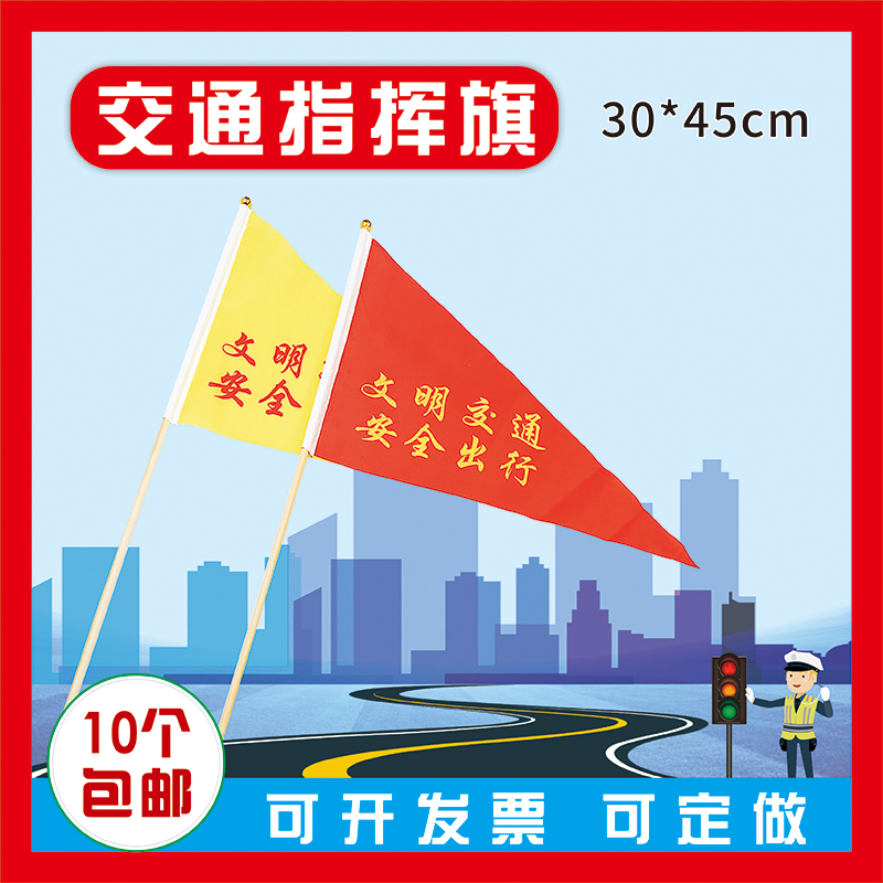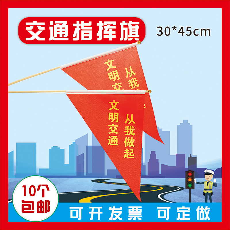 30*45手摇旗交通指挥旗文明交通安全出行志愿者安全出行文明礼让红灯信号旗导游可定做logo