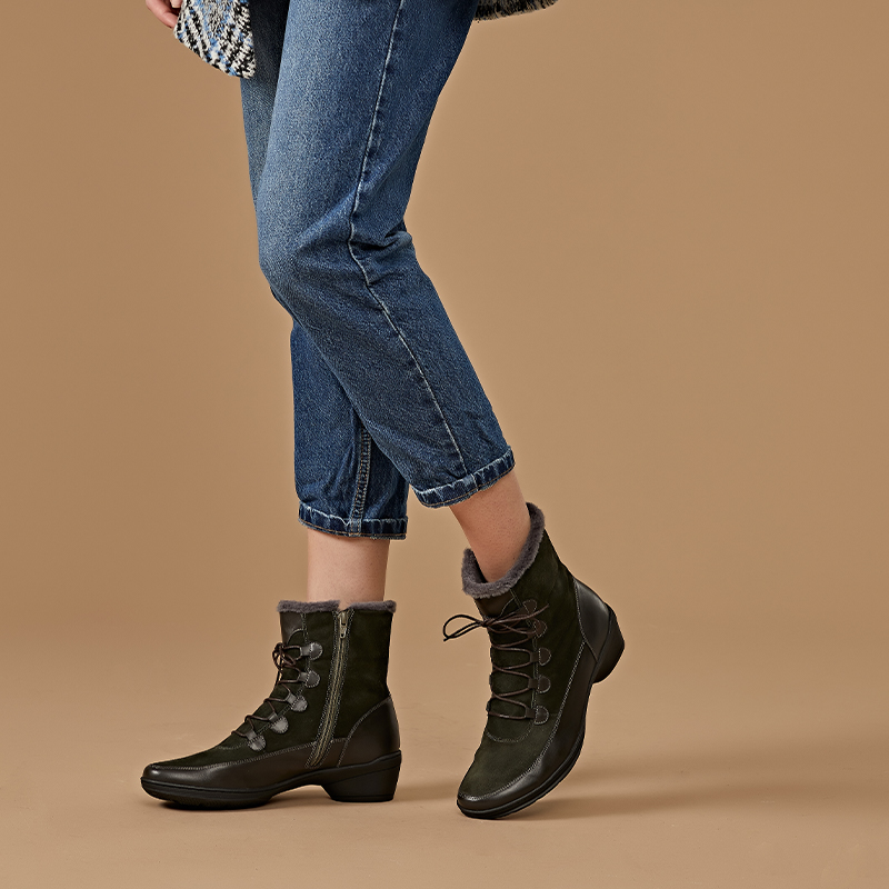 羊皮版!西部褶皱短靴女堆堆靴复古英伦风小个子内增高中筒马丁靴