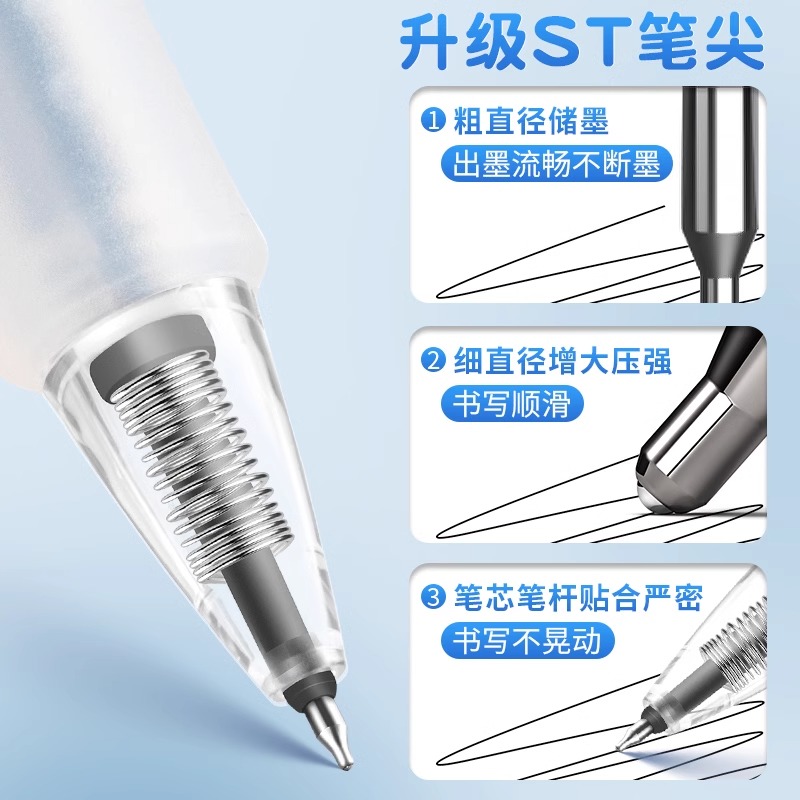 ST刷题笔高颜值按动中性笔圆珠笔黑色水笔小学生专用考试0.5速干碳素笔水性黑笔按压式做笔记签字笔非按斤卖
