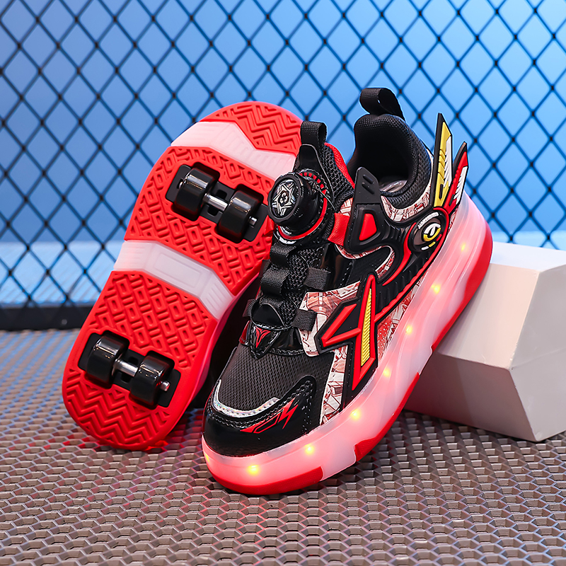 男童暴走鞋秋季2025新款四轮儿童轮滑鞋旋钮男孩可拆卸溜冰鞋发光