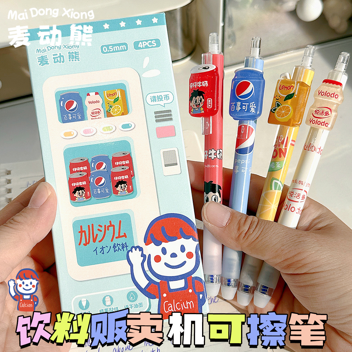 麦动熊饮料贩卖机热可擦笔蓝色0.5按动按压式中性笔水笔小学生专用高颜值少女心针管st笔头好用的蓝笔摩易擦