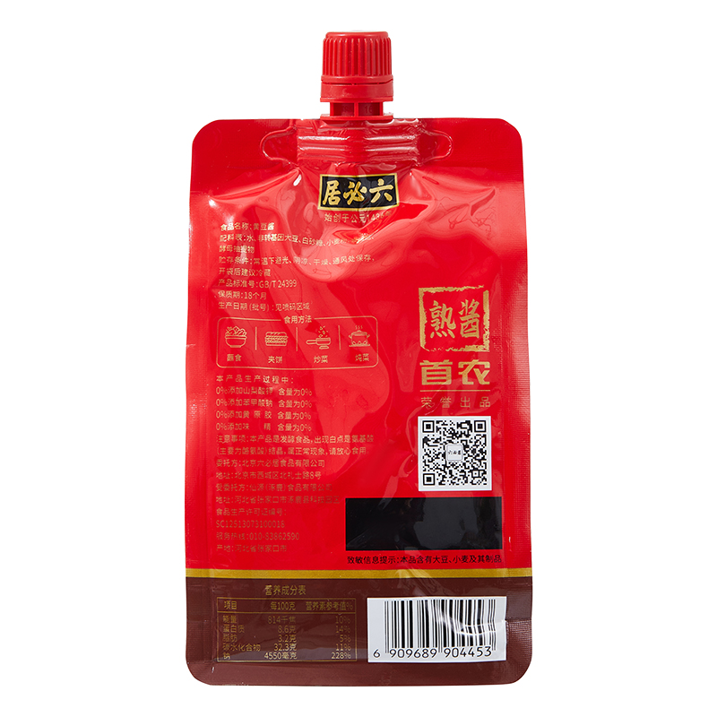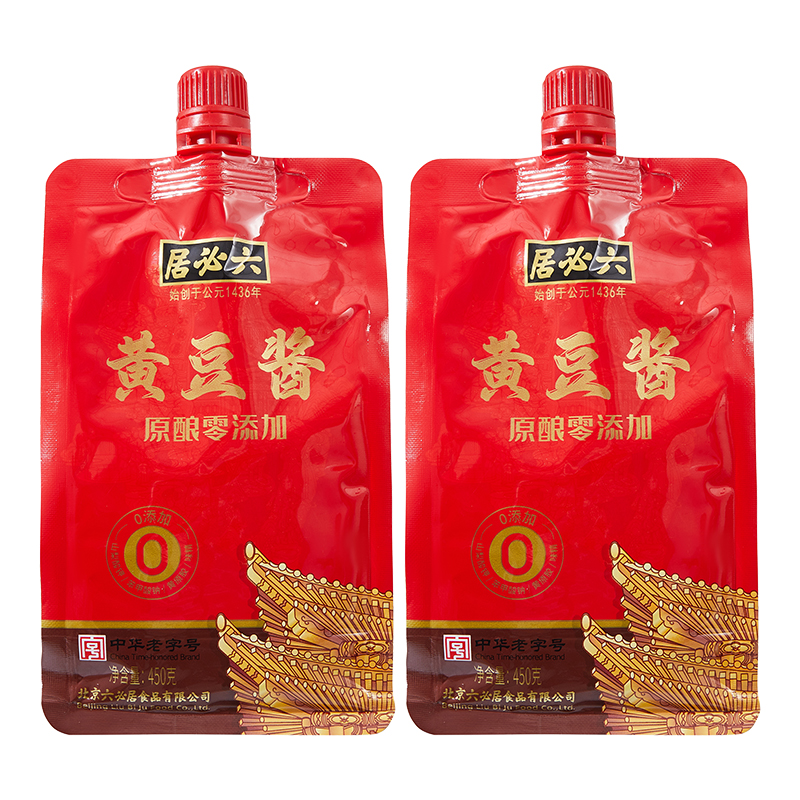 六必居0添加黄豆酱450g晒制熟酱农家豆瓣酱蘸菜酱家拌面炒菜袋装