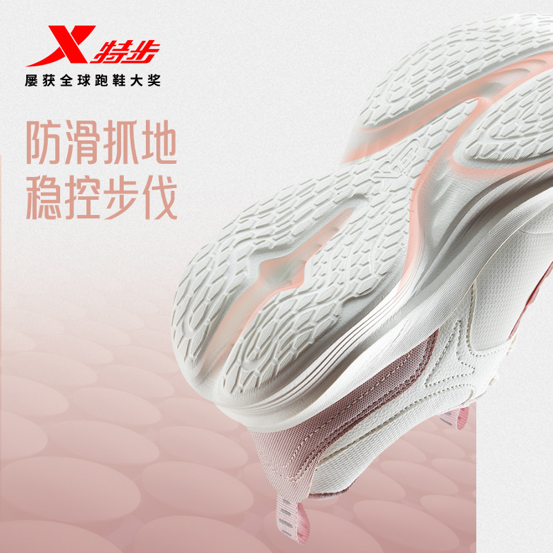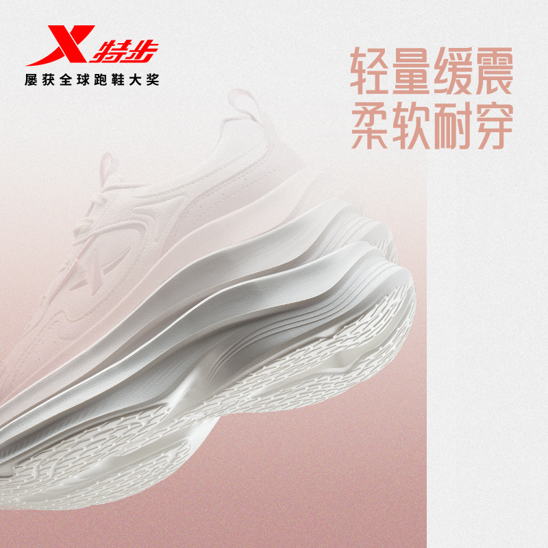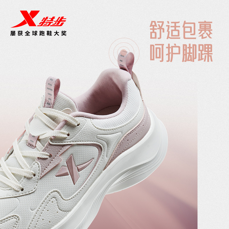 特步女鞋跑鞋秋季新款轻质缓震运动鞋女皮面防泼水跑步鞋跳绳鞋