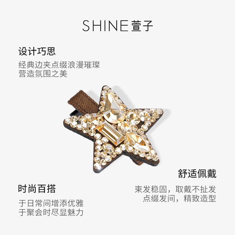 SHINE萱子饰品香槟魅影系列琥珀流光风璀璨小熊边夹发夹星星发饰