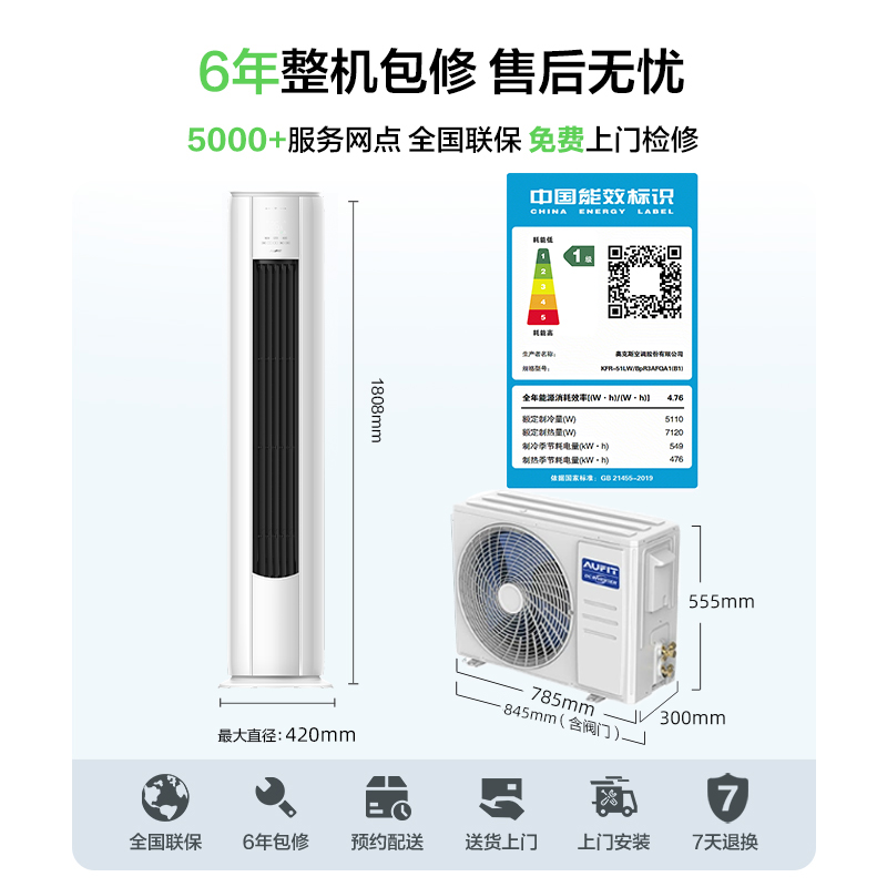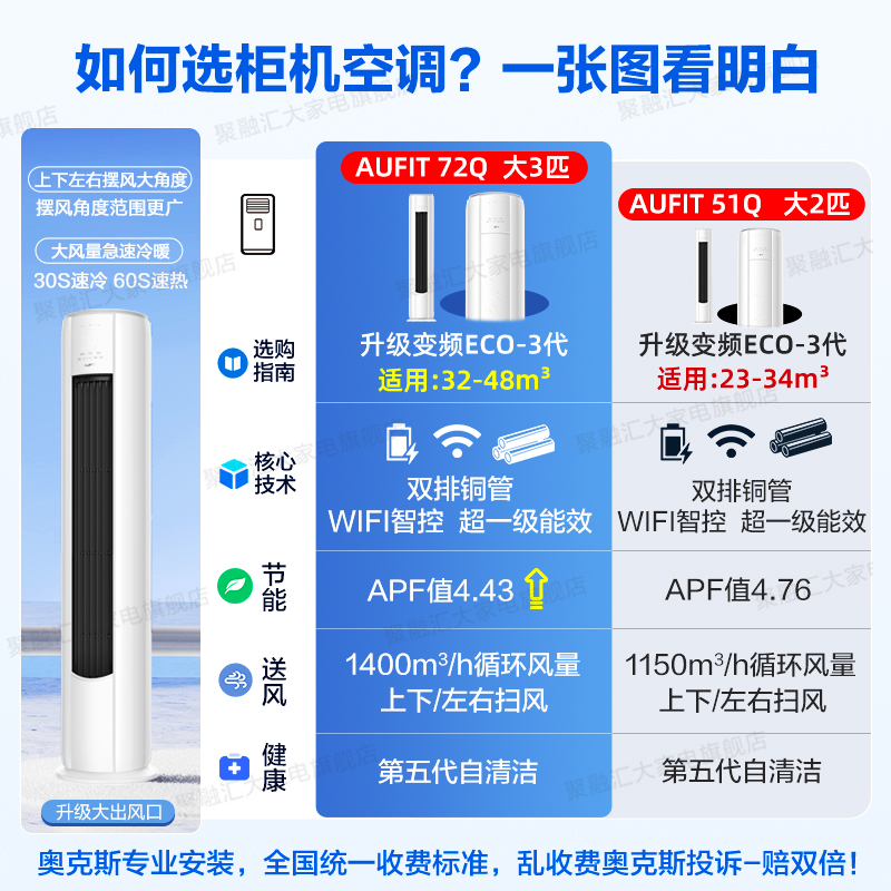 立减20%]AUFIT立式空调大2匹奥克斯出品一级能3p效客厅家用旗舰店