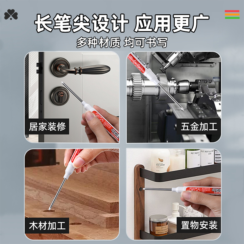 长头记号笔可加墨油性防水防油不掉色加长深孔瓷砖木工标记专用笔