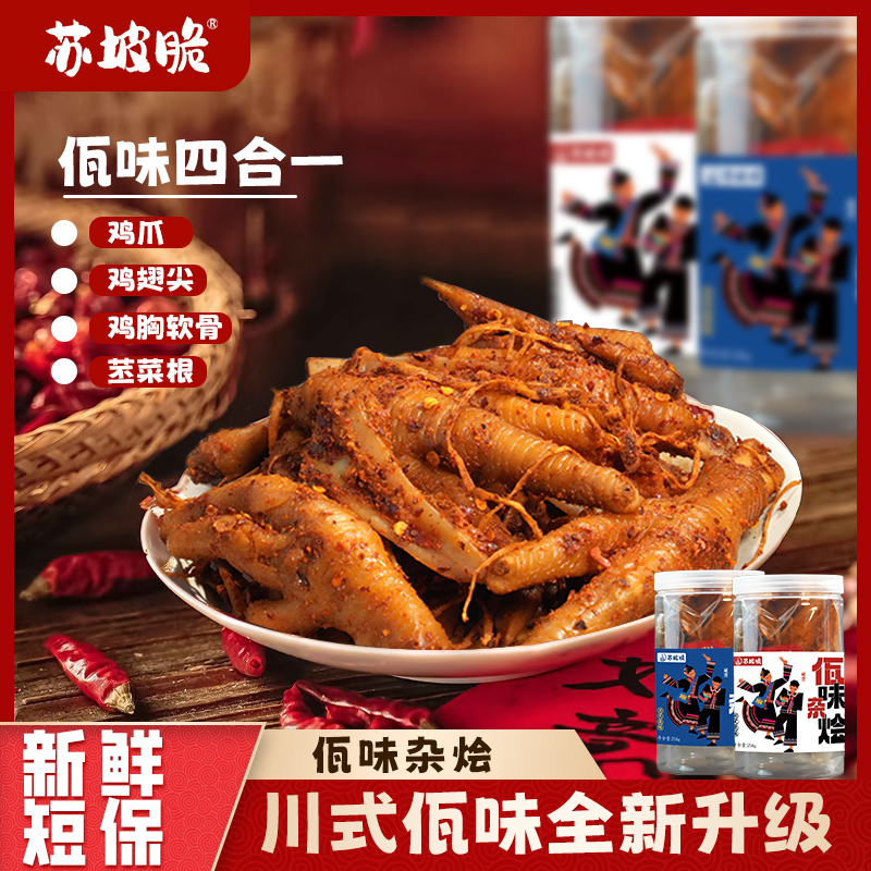 有骨大杂烩鸡脚川式佤味不含牛皮鸡爪香辣麻辣鸡翅凤爪