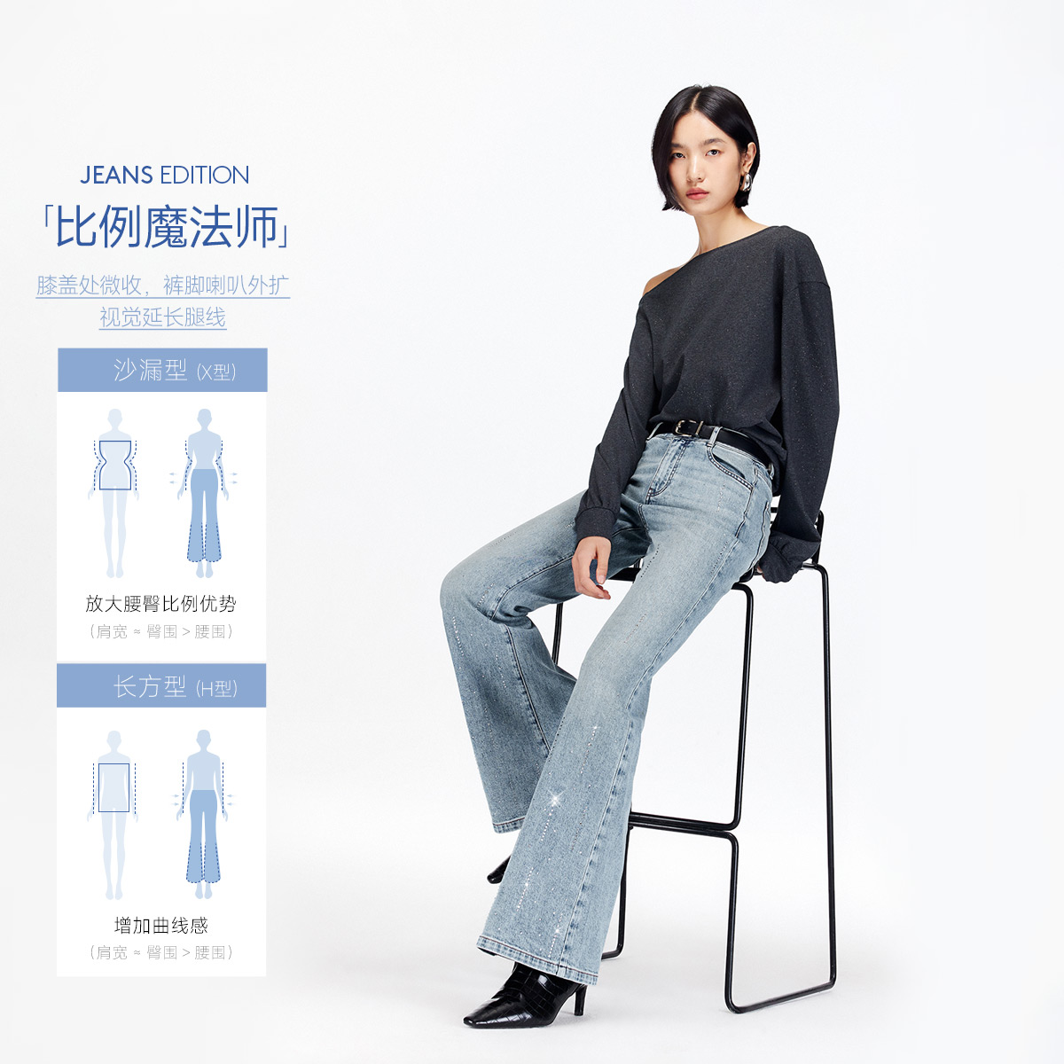 【流星雨】Vero Moda牛仔裤女25秋冬烫钻微喇裤精致时尚老钱风