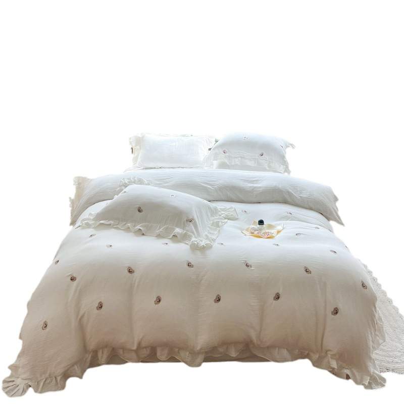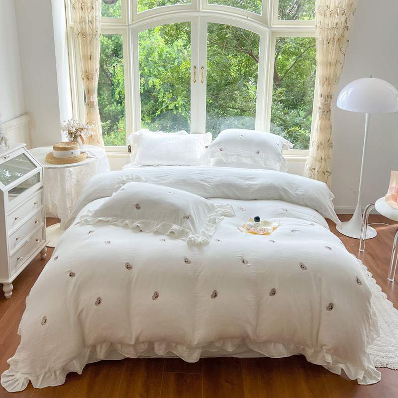 2023新款皱皱纱荷叶边刺绣工艺款四件套米诺米诺简约混搭薄款