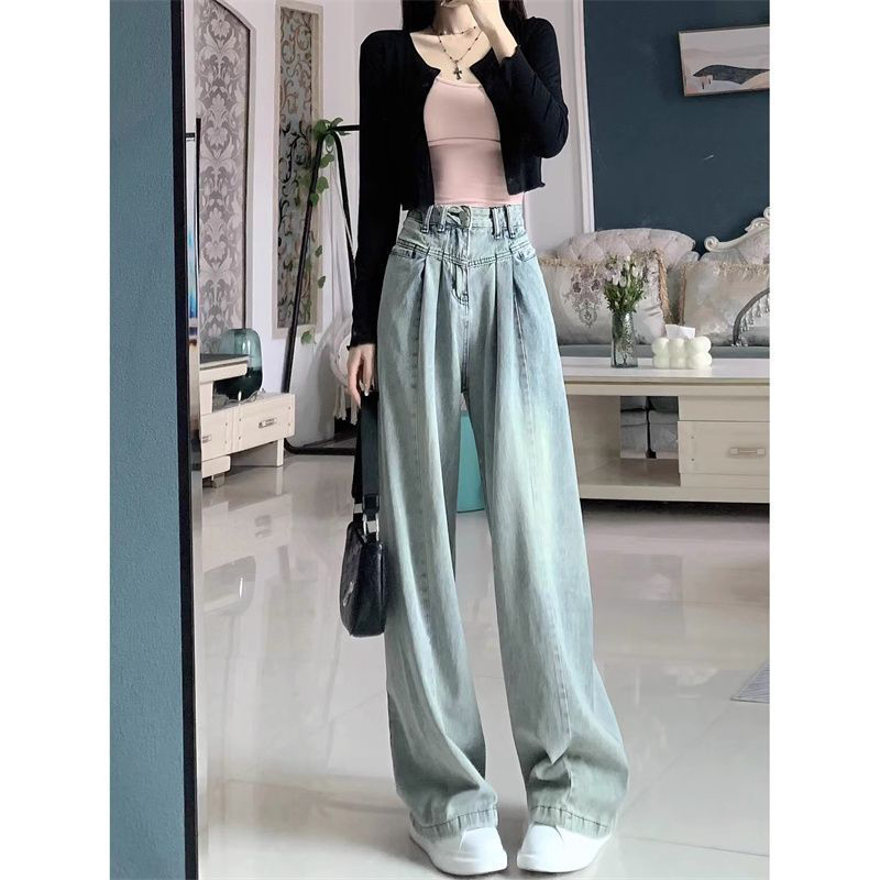 李李服饰气质白色高腰阔腿牛仔裤女2025年秋季显瘦显高休闲拖地裤