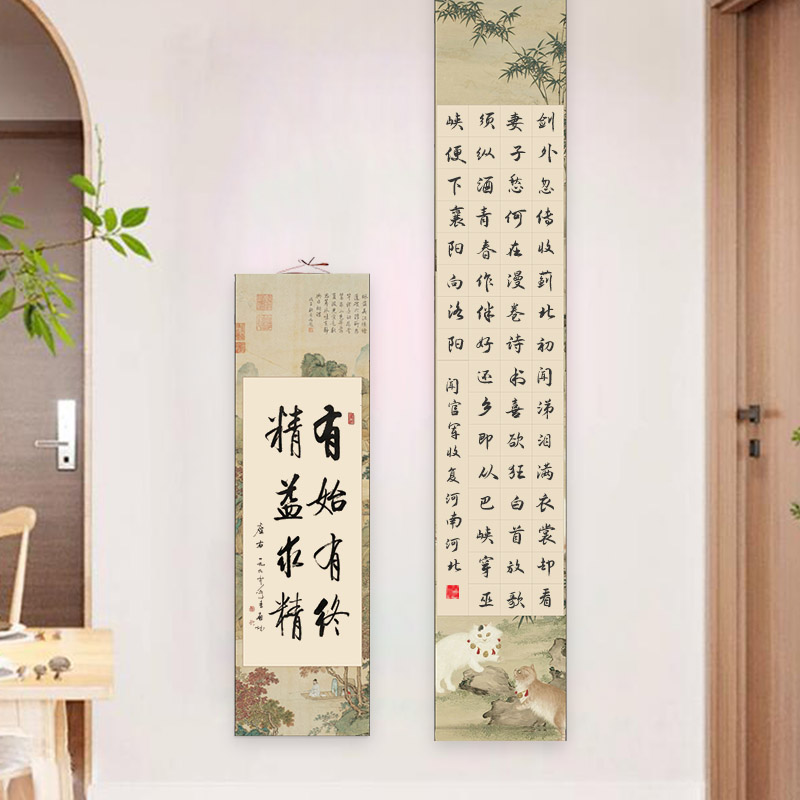 宛陵免装裱卷轴书法空白挂轴20/28/56格方格书法五言七言作品纸瓦当画轴挂画四尺对开半生半熟书法专用纸批发