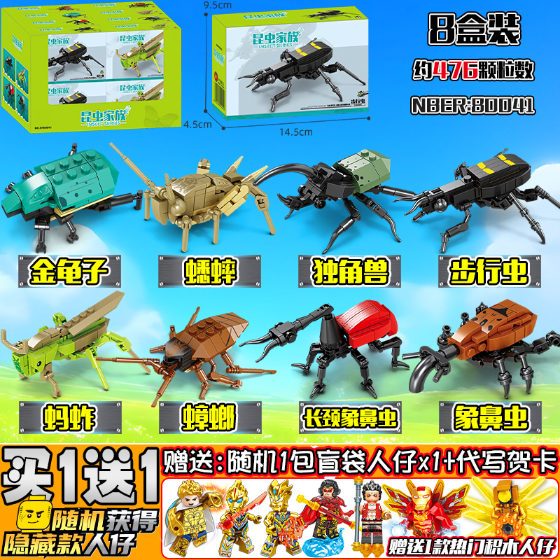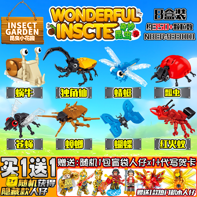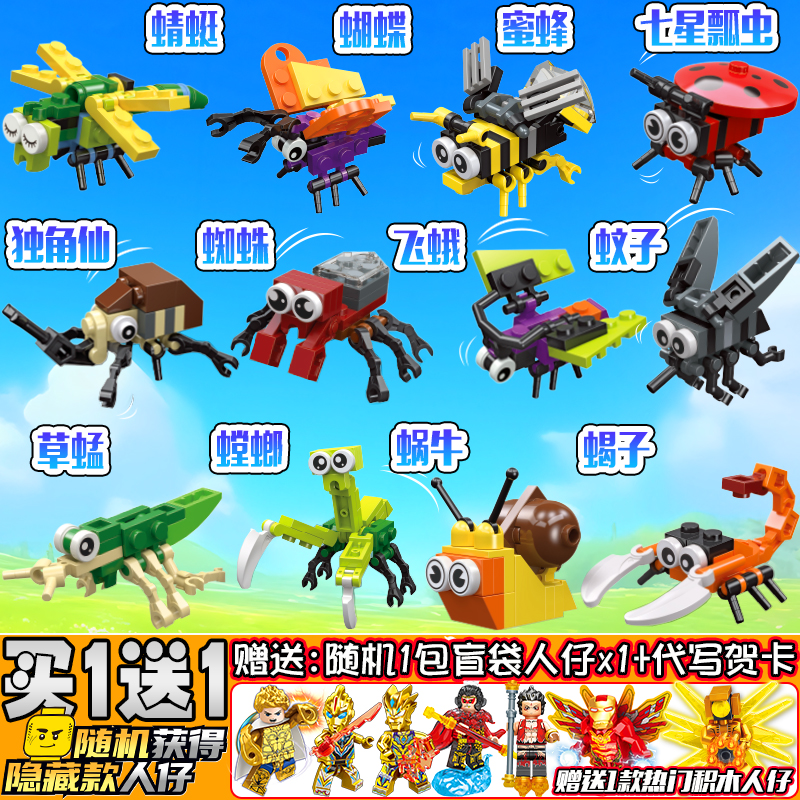 昆虫物语卡通动物世界小颗粒积木儿童益智拼装幼儿园启蒙玩具礼物