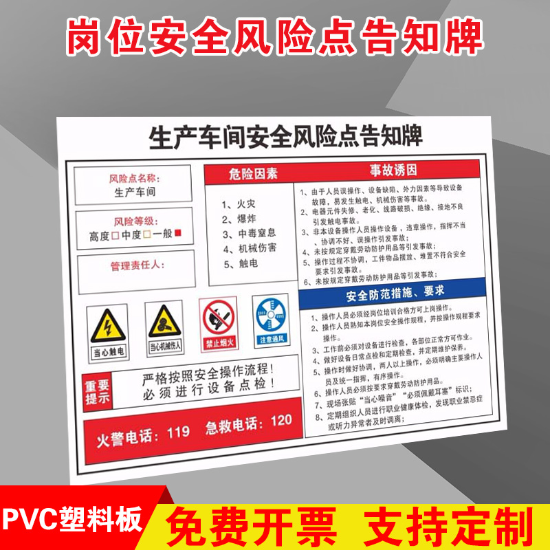 工厂生产车间 岗位安全风险点告知牌 岗位风险告知卡提示标识警示牌定制配电房室焊锡冲压仓库空压机机床行车