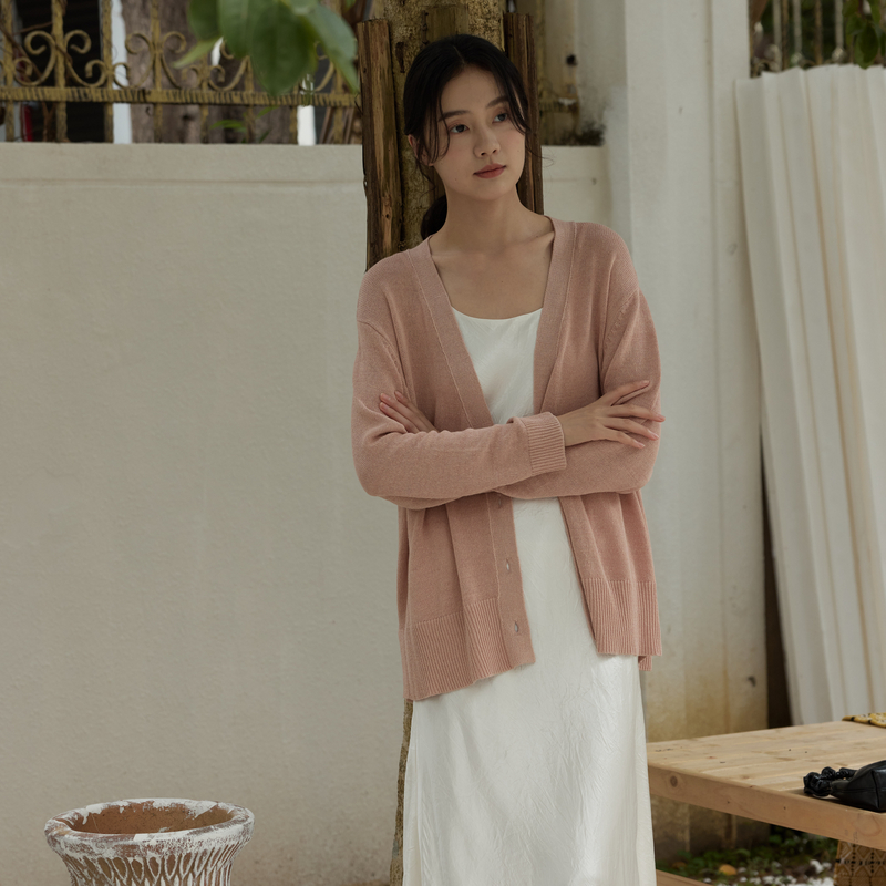 AIRIQI秋季新款新中式斜襟V领系扣设计感中长款针织开衫AH42KS123