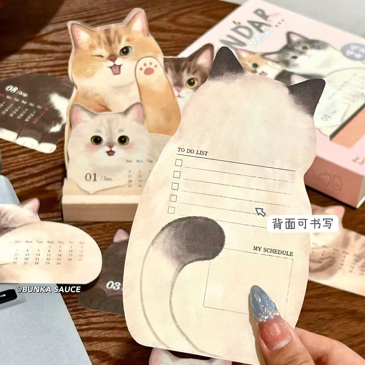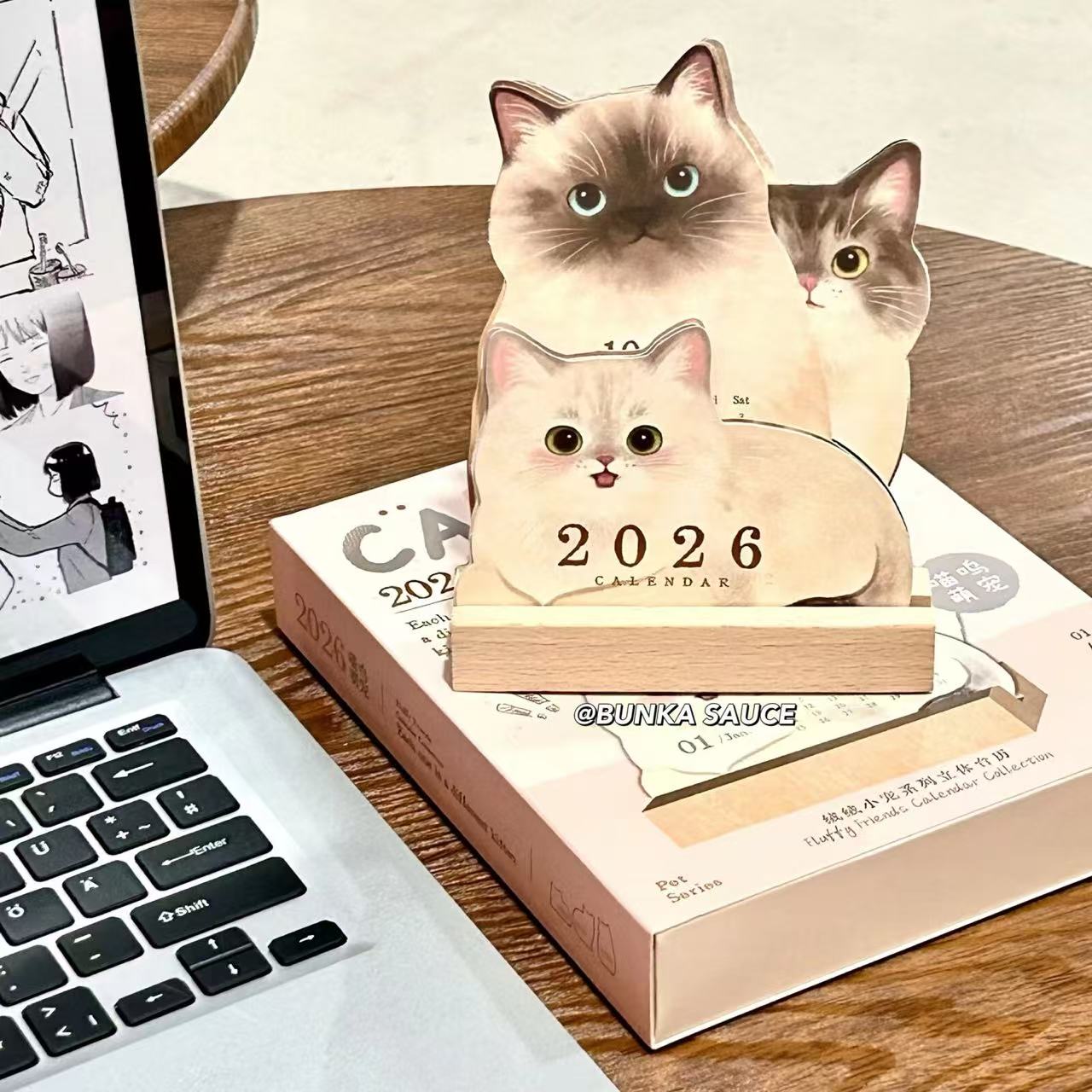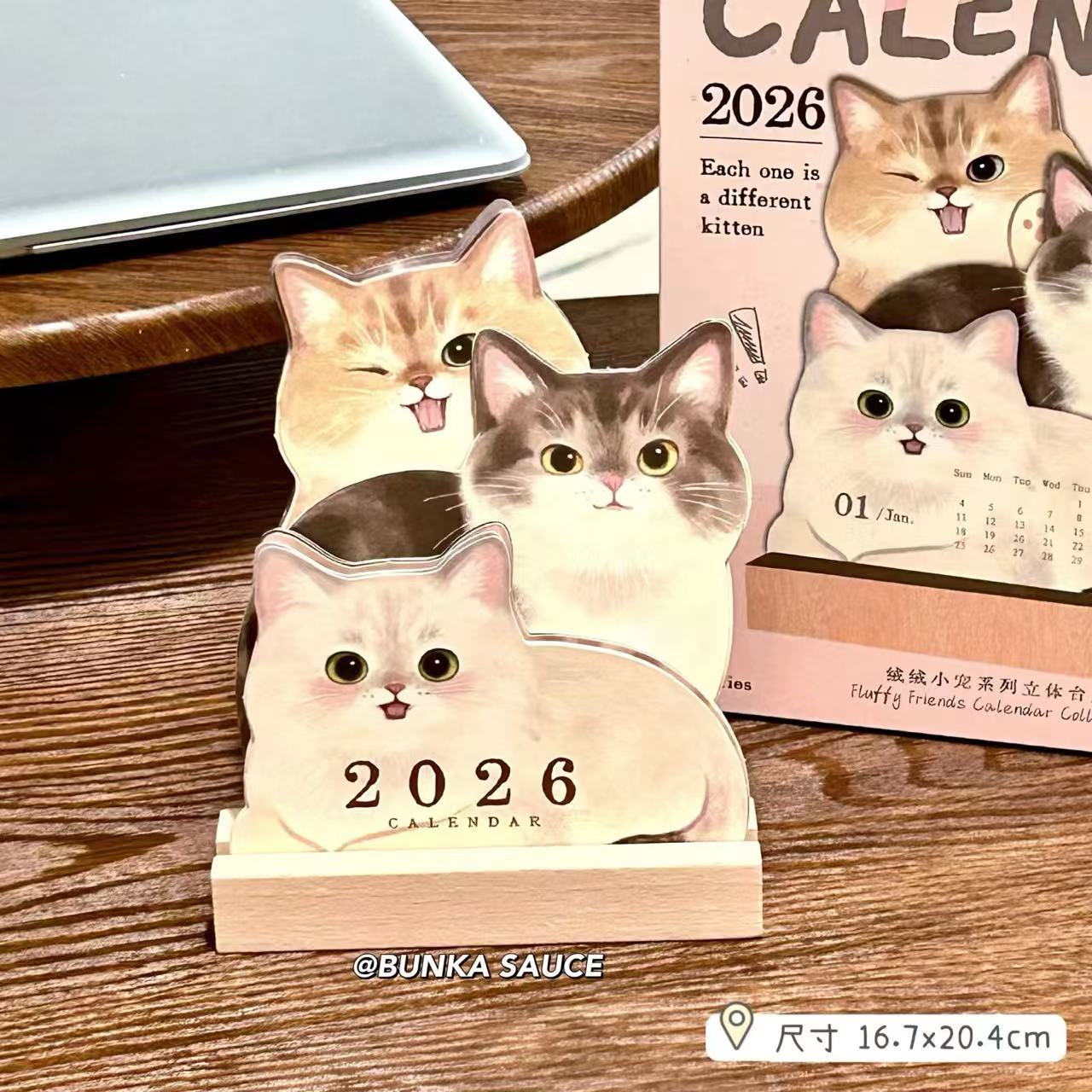 2026日历毛茸茸小猫立体台历可爱猫咪高颜值少女心木质桌面摆件