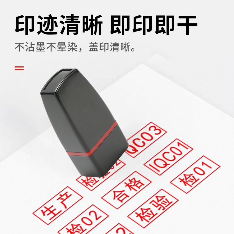 定制小扁长方形QC PASS检验合格数字编号工号质检字母自动出油自带印油光敏印章品质盖章名字附件总检印章IQC