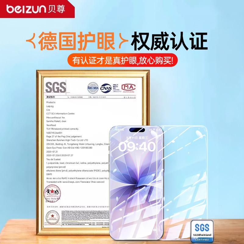【超越AR德国护眼】贝尊适用于苹果17promax钢化膜iphone16pro手机膜新款air防窥贴膜15防蓝光14防偷窥por抗x