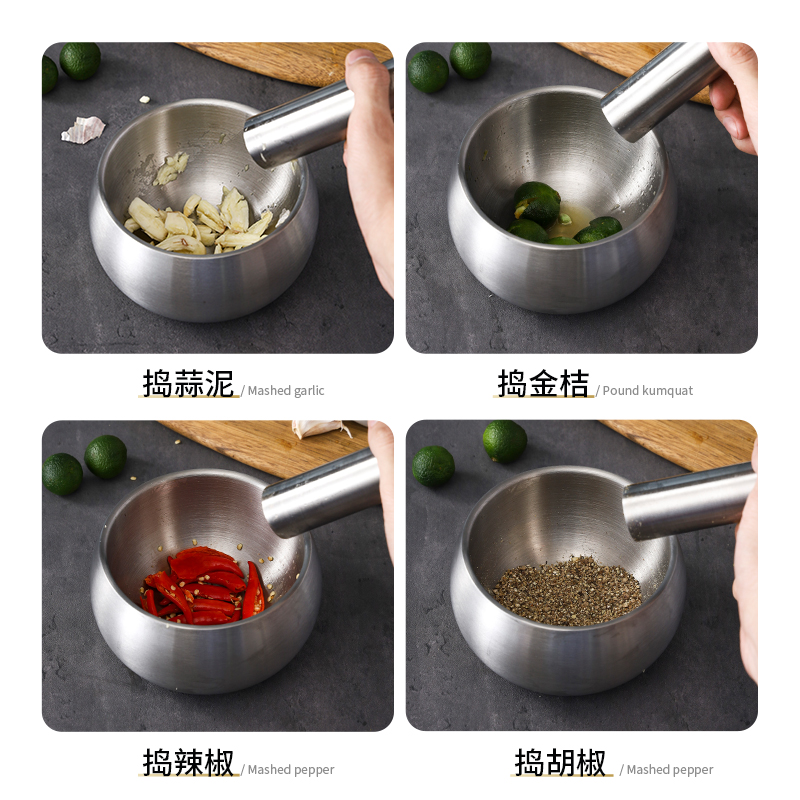 不锈钢304捣蒜器石臼家用蒜蓉捣碎罐压蒜器蒜泥特大捣药钵研磨器
