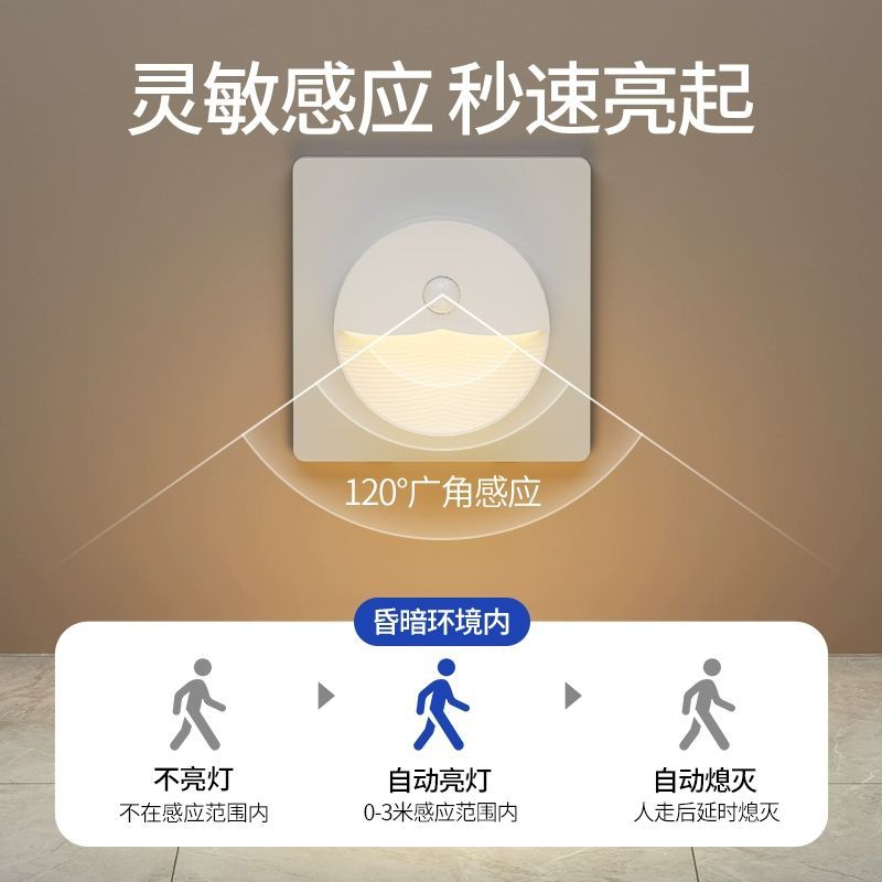 led小夜灯五孔插座带人体感应地脚灯86型嵌入式暗装楼梯过道床头