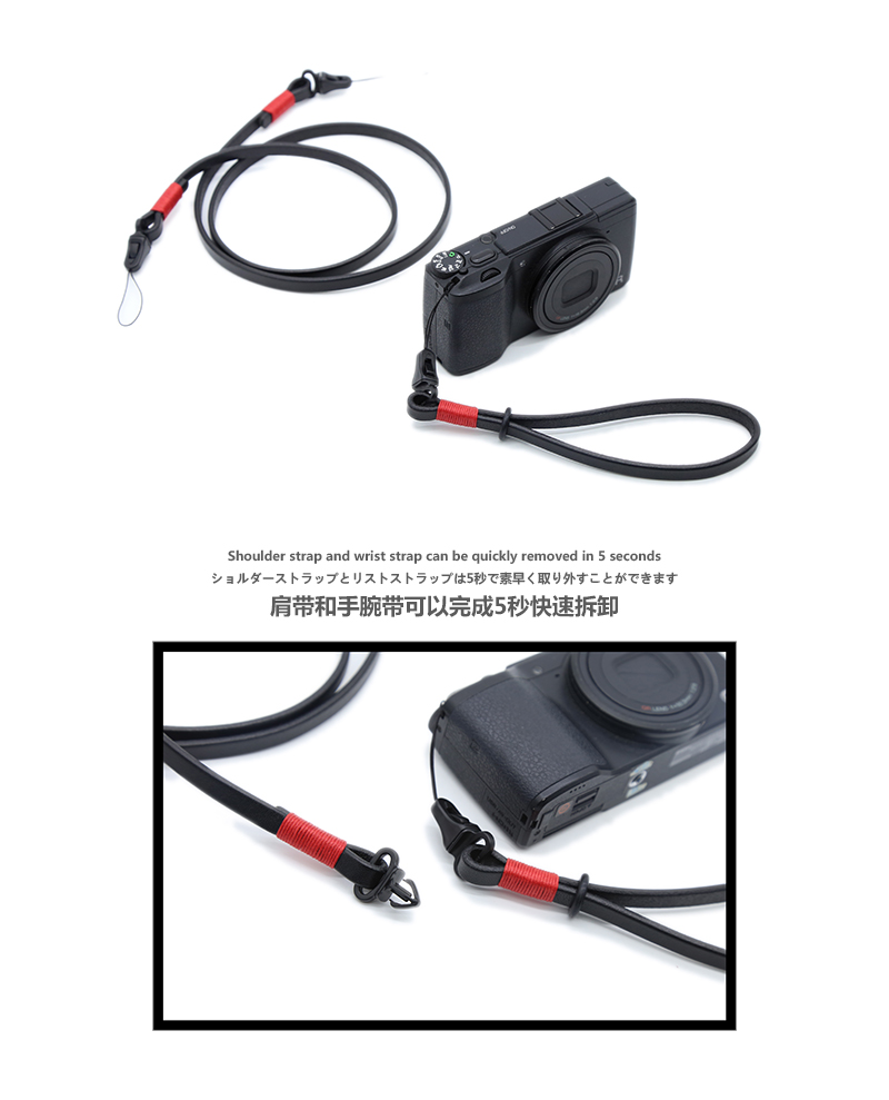 BHW法国快拆扣相机背带适用于徕卡索尼富士黑卡牛皮单反微单肩带
