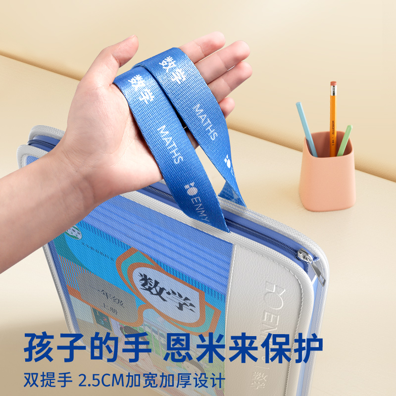 恩米l型学科科目分类袋拎书袋A4文件袋试卷分科补习手提课本书本收纳初中生小学生专用作业补课包透明拉链式