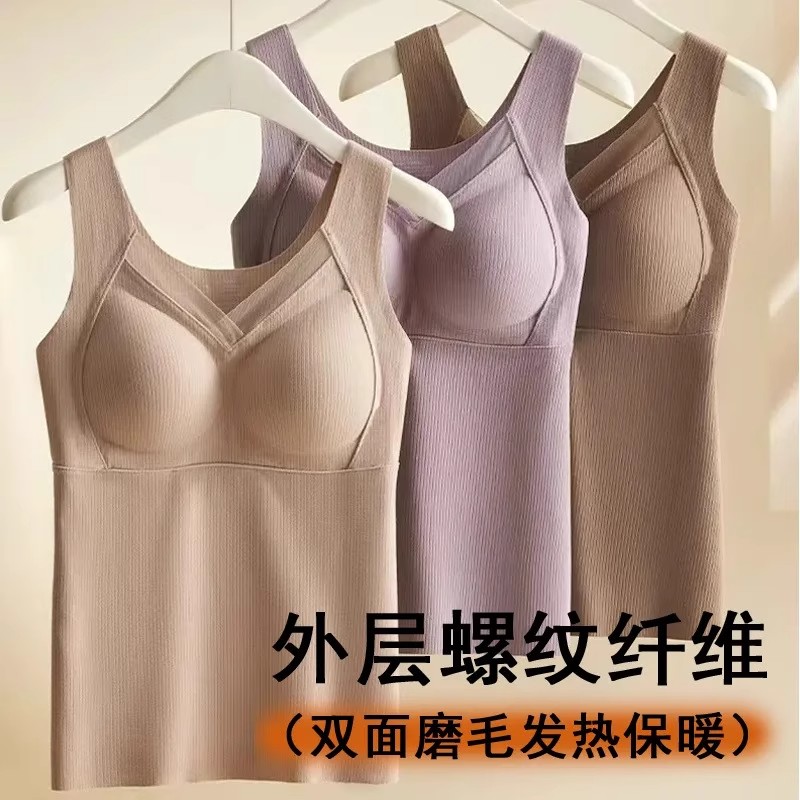 德绒保暖背心女士带胸垫一体秋冬季加绒加厚羊毛无痕发热吊带内搭