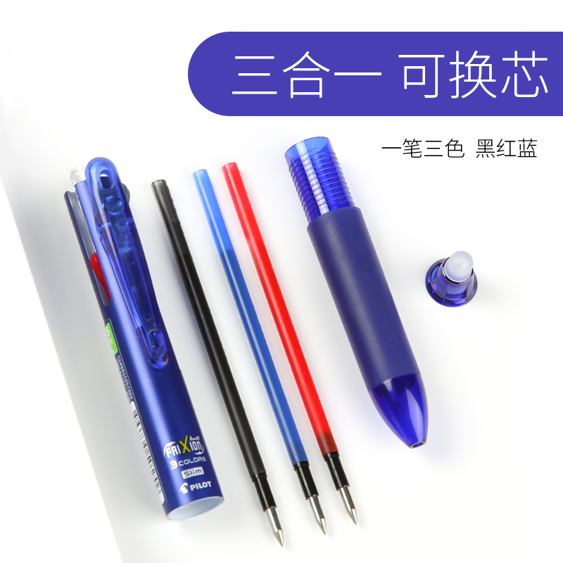 日本进口Pilot百乐可擦笔frixion多功能三色按动热可擦中性笔0.5