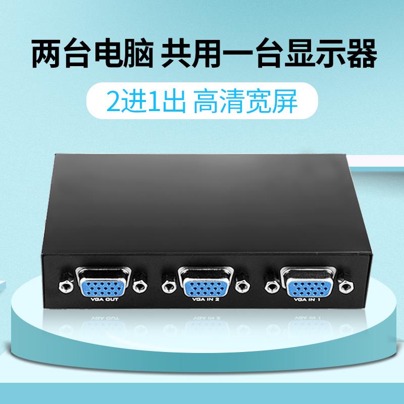 VGA切换器二进一出 vga2口两台电脑主机共用一个显示器转换器一拖二连接线 二合一转换分配两个多电脑双