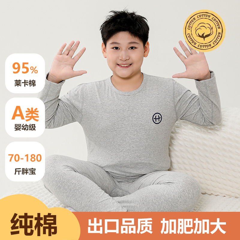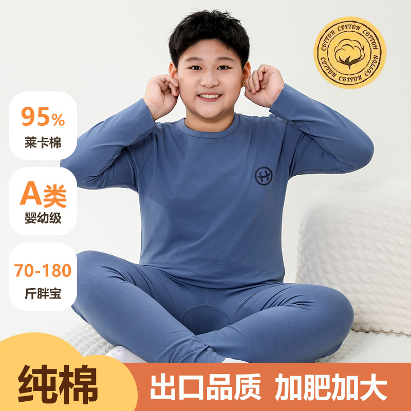 日系男胖童秋衣秋裤内衣套装A类莱卡棉宽松秋冬保暖肥胖男士加大