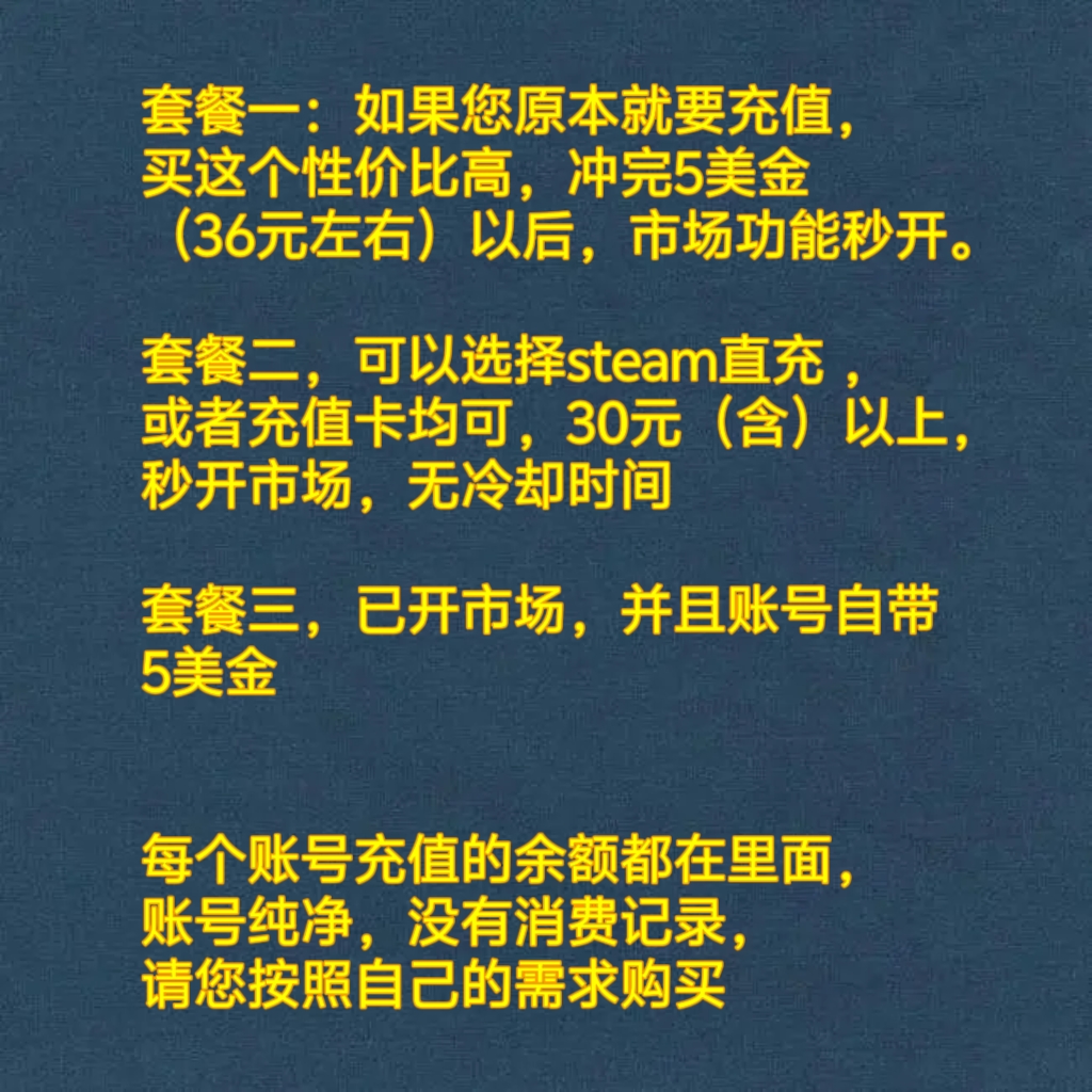 steam账号,市场号,充值后秒开市场,或者自带5美金的,sda令牌