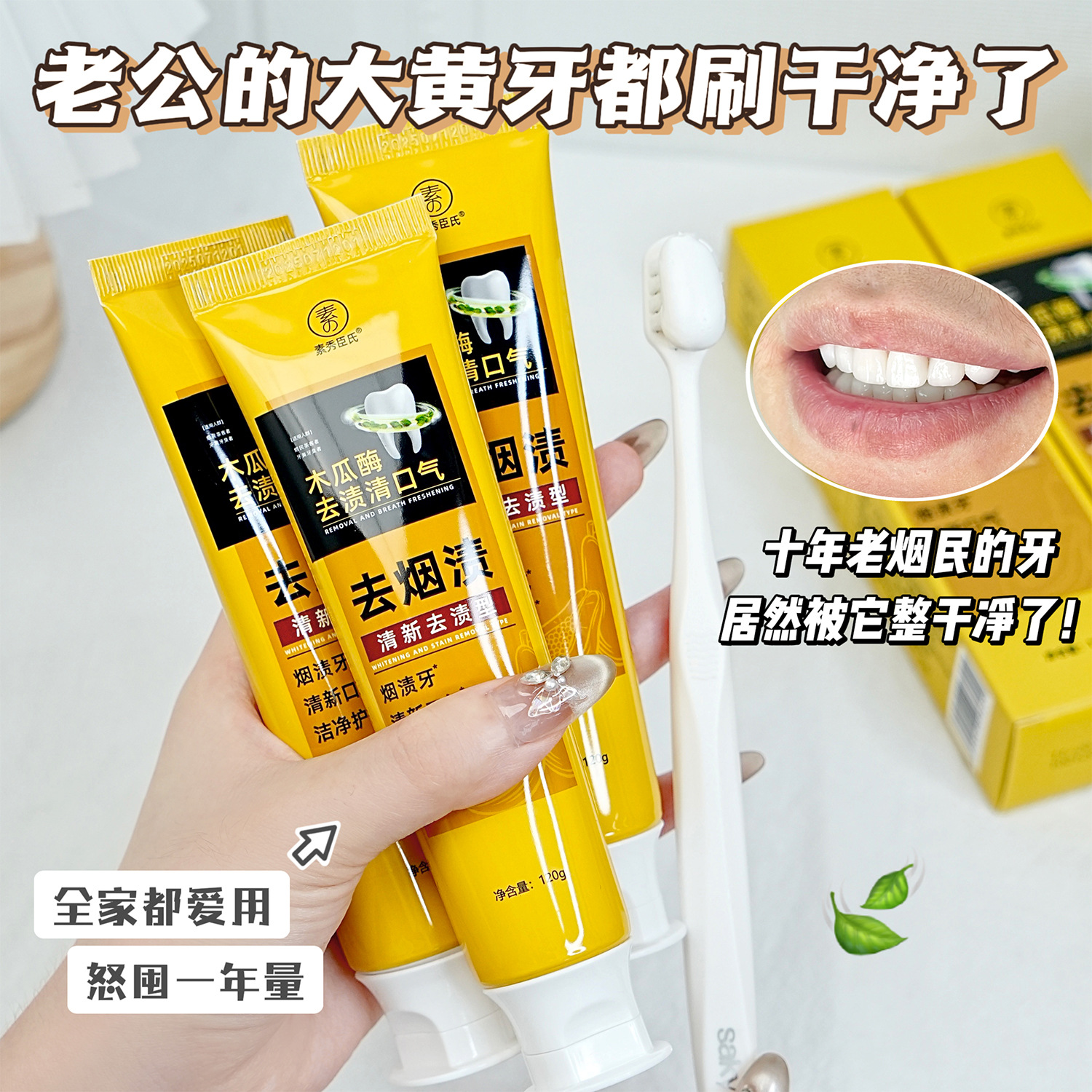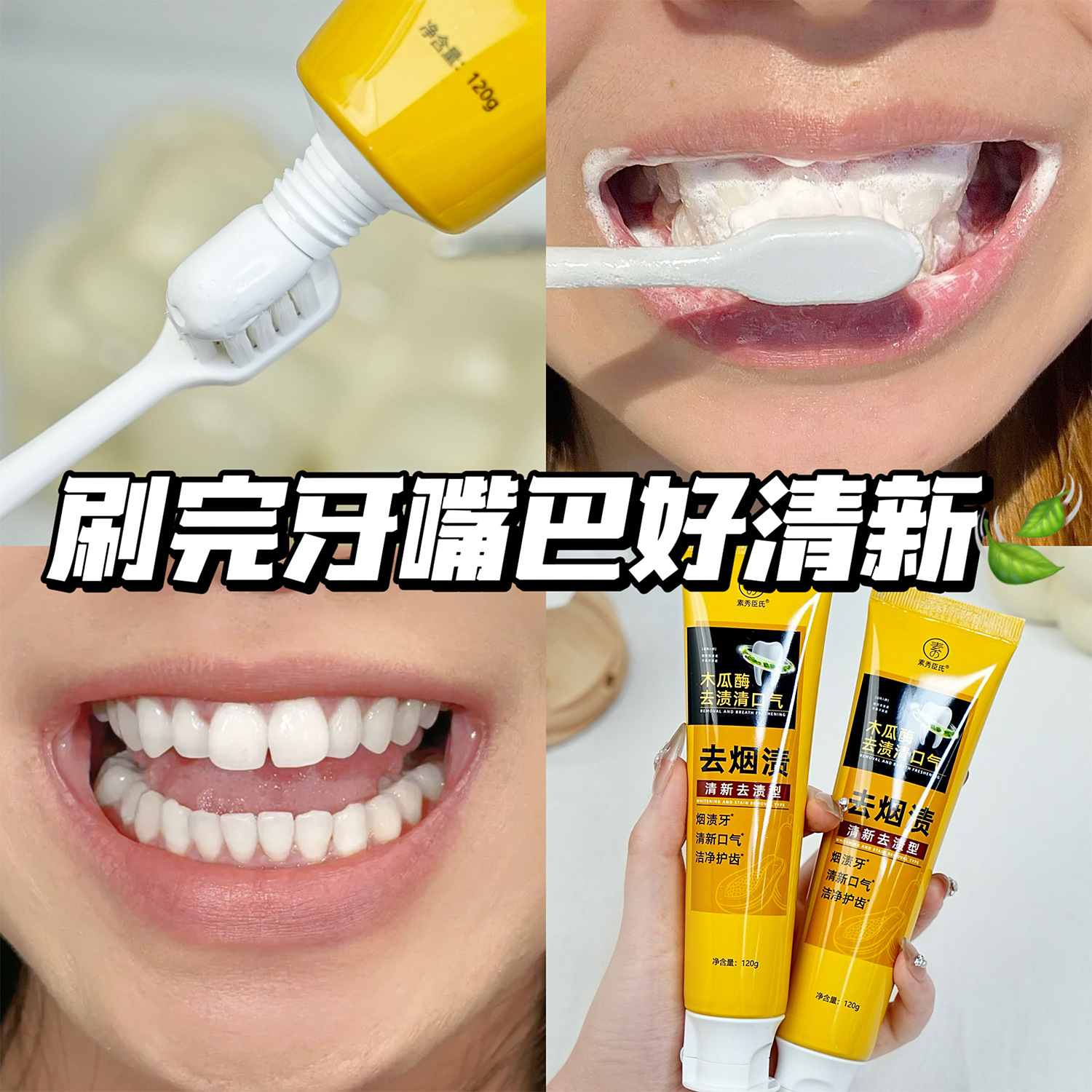 木瓜酶去烟渍牙膏正品去黄去口臭薄荷护牙龈炎去烟渍清新口气亮白