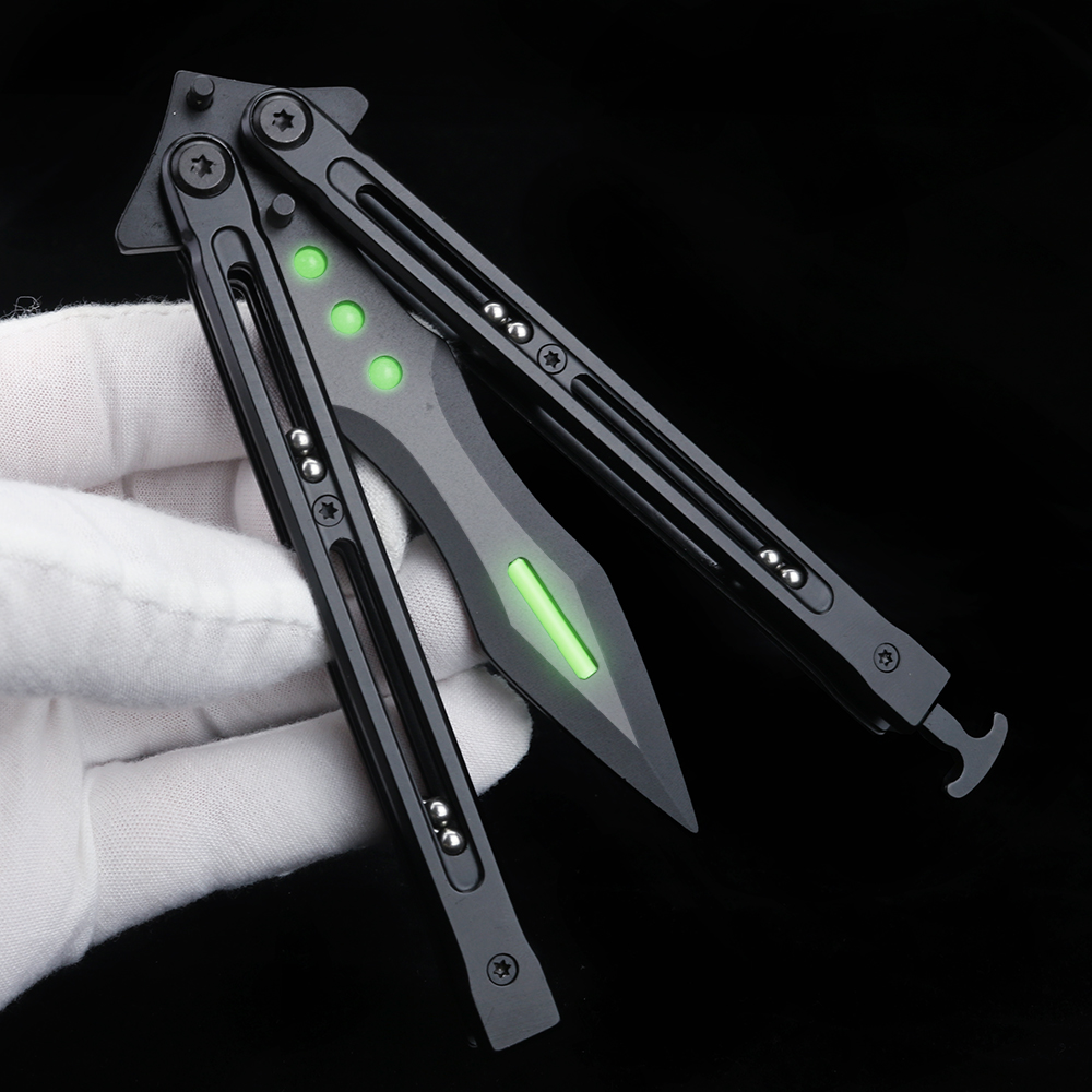 玄锋新款夜光蝴蝶刀安全训练精调蝴蝶梳高颜值轴套配重练习不开刃