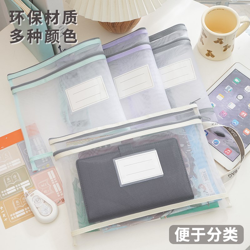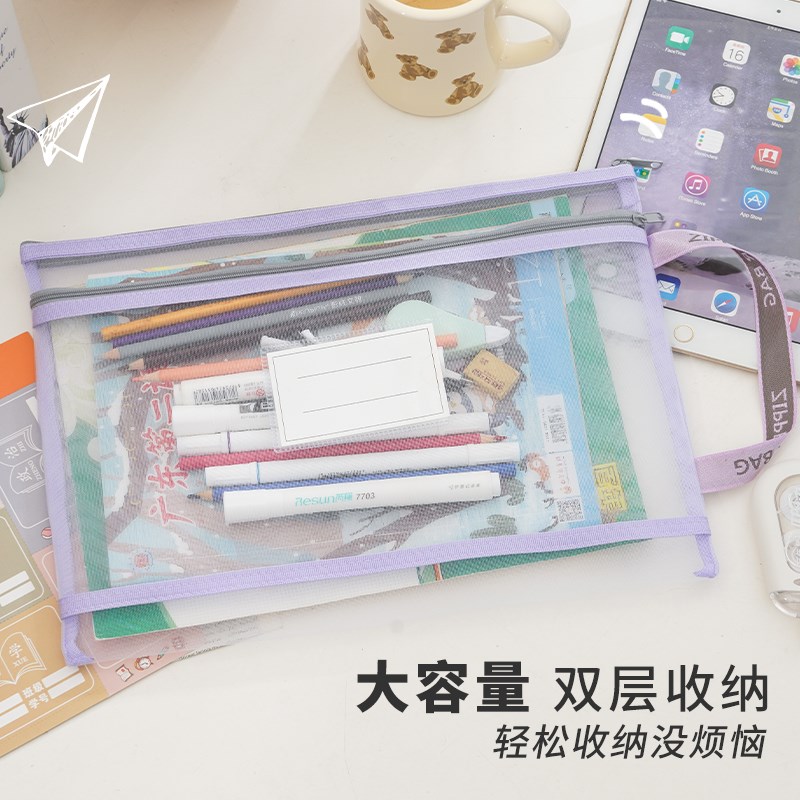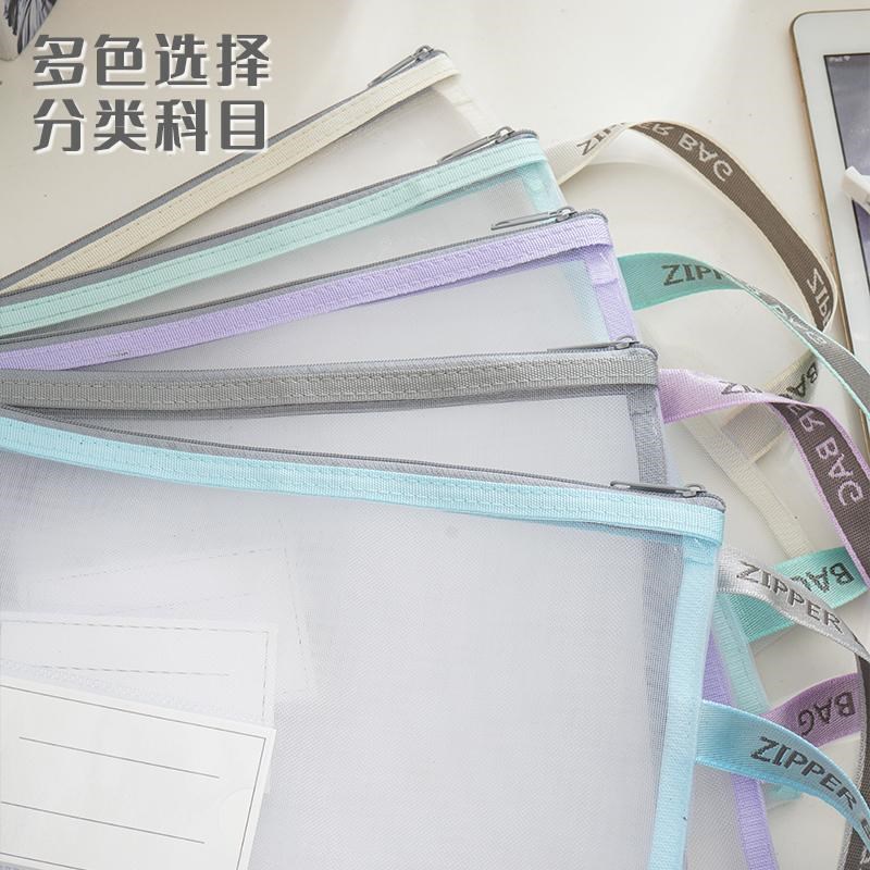 学科科目袋分类文件袋拉链双层大容量学生作业袋透明网纱A4资料袋