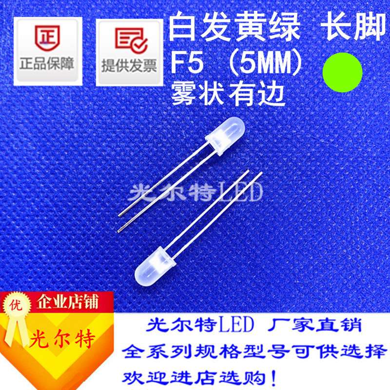 直插LED灯珠F5白发普绿高亮黄绿光5MM发光二极管雾状绿灯厂家直销
