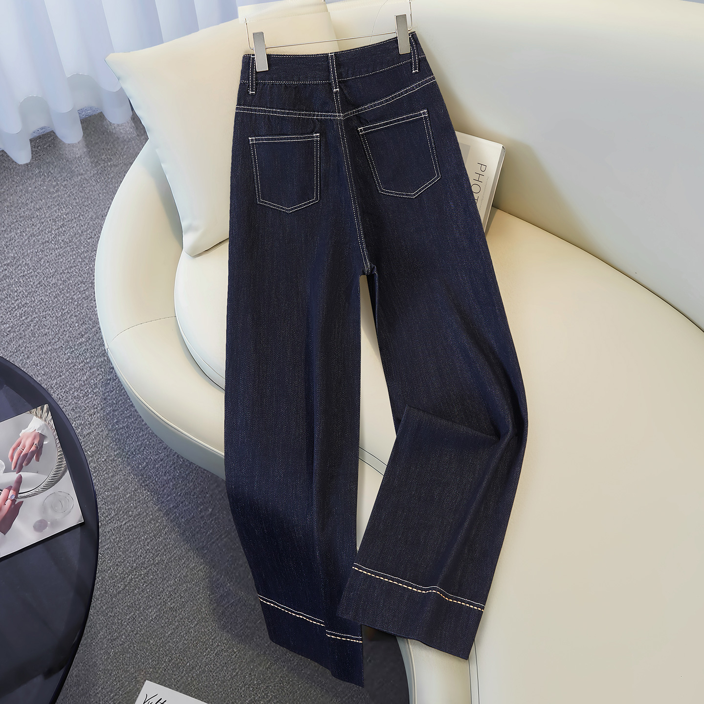 李李服饰气质白色高腰阔腿牛仔裤女2025年秋季显瘦显高休闲拖地裤