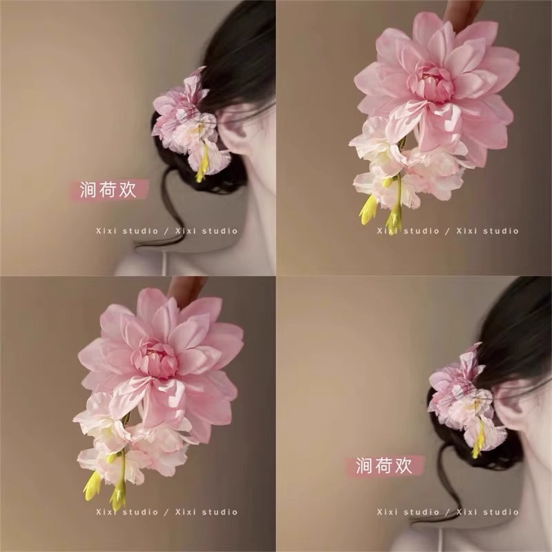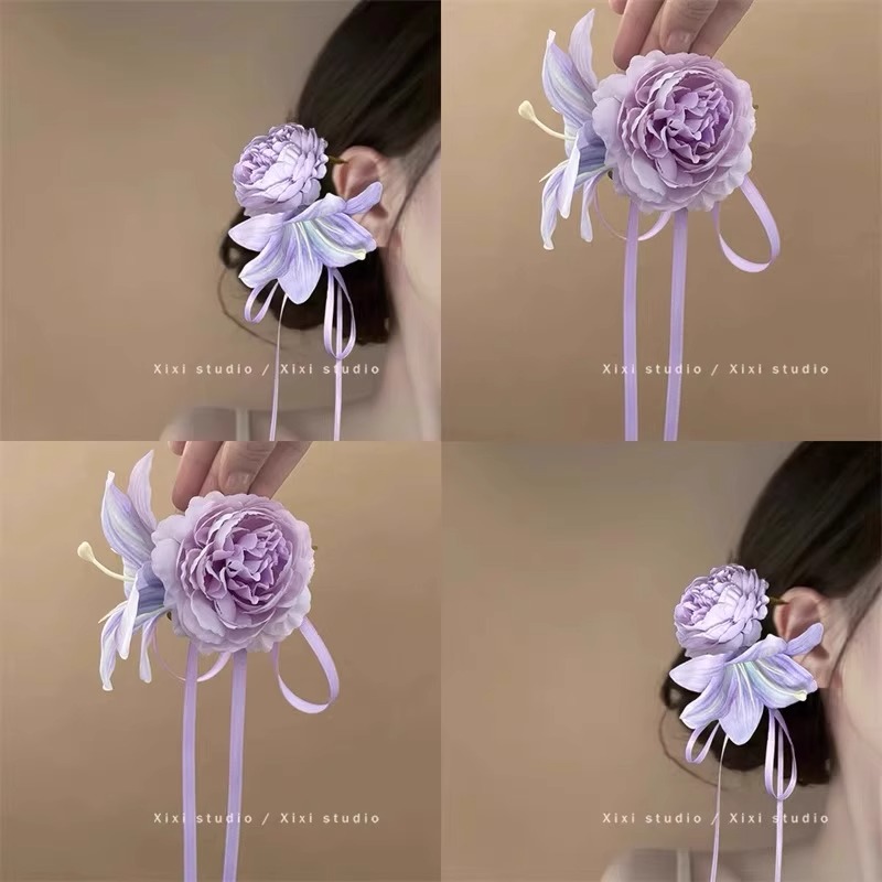 花朵发夹合集!侧边薄纱仙气绢花古风发饰国风头饰品流苏芍药