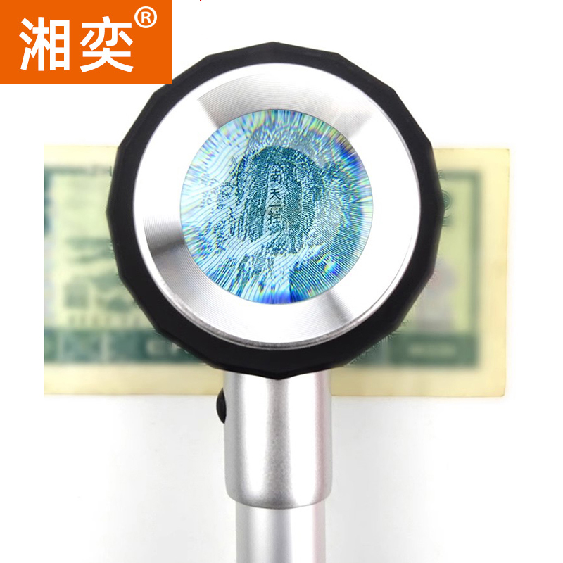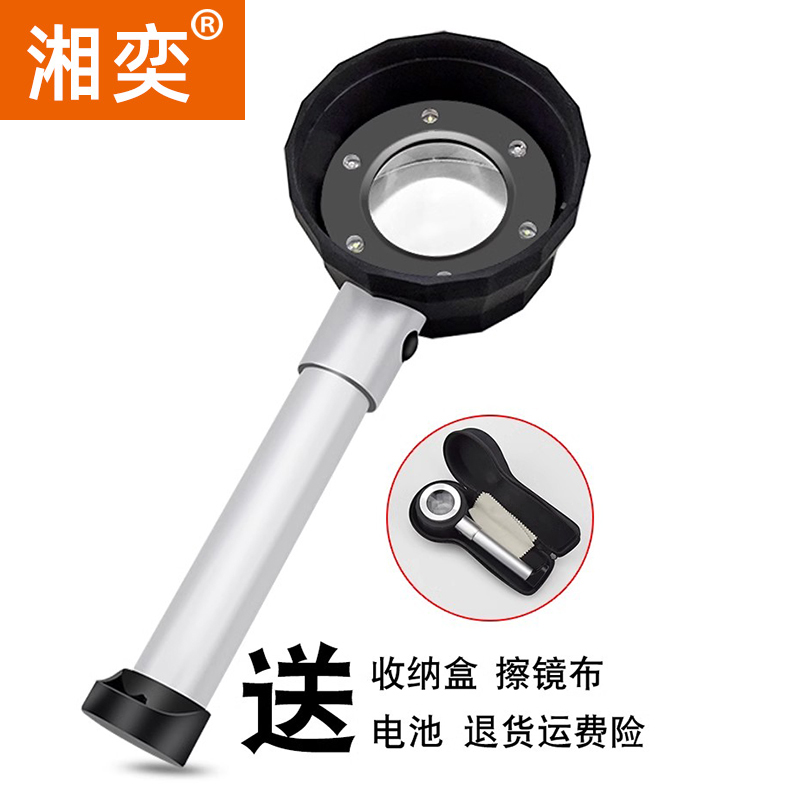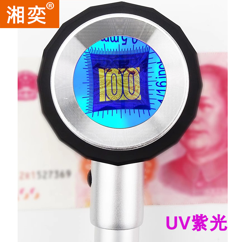 湘奕60倍高清刻度放大镜100看烟酒五角星珠宝鉴定紫光200镇纸老人阅读LDE灯光扩大镜看布料网格钱币银元50