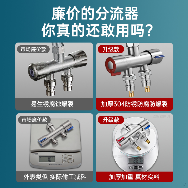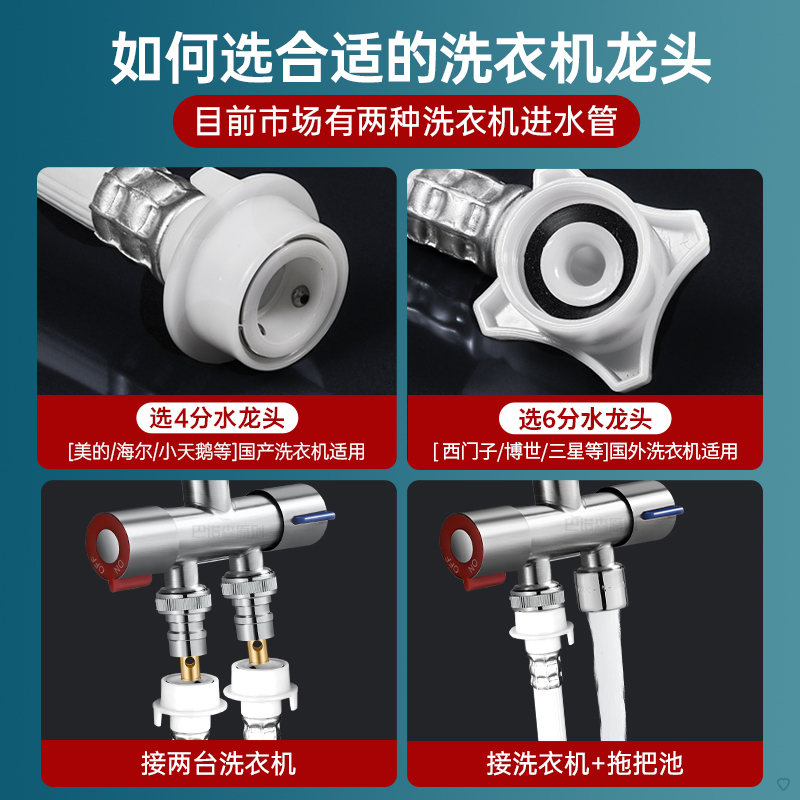 洗衣机水龙头一进二出接头一分二三通分水阀分流器角阀花洒双出水