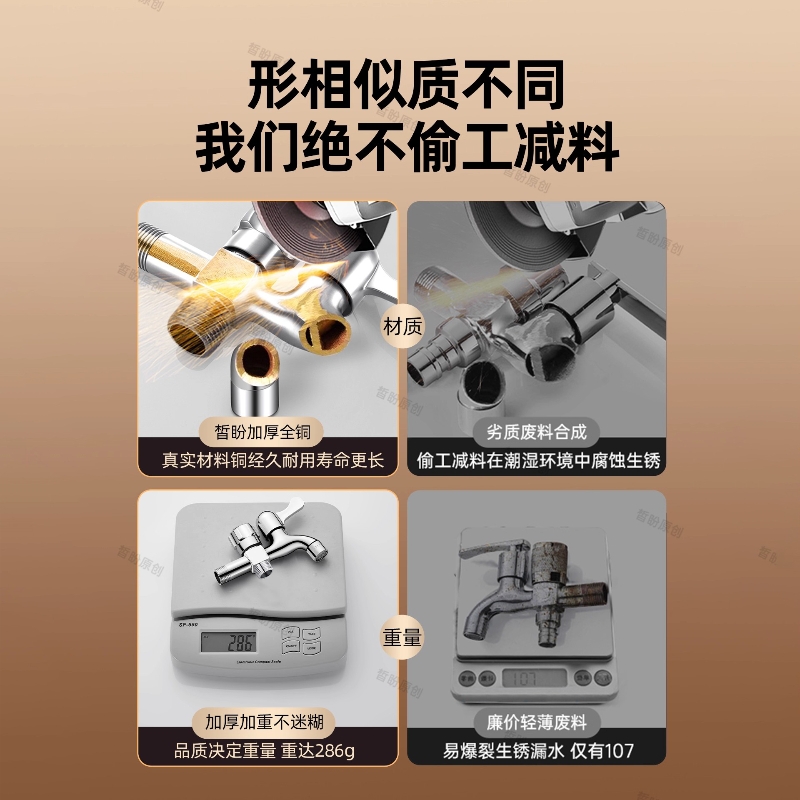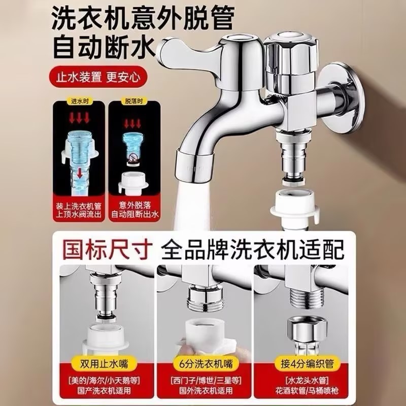 四分螺纹洗衣机水龙头专用一进二出双出水一分二接头两用全铜加长