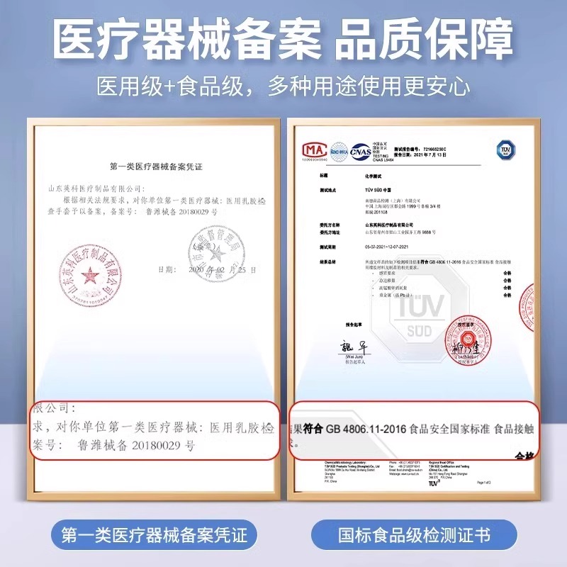 英科医用一次性乳胶手套加厚耐用橡胶丁腈医疗检查丁晴食品级防护