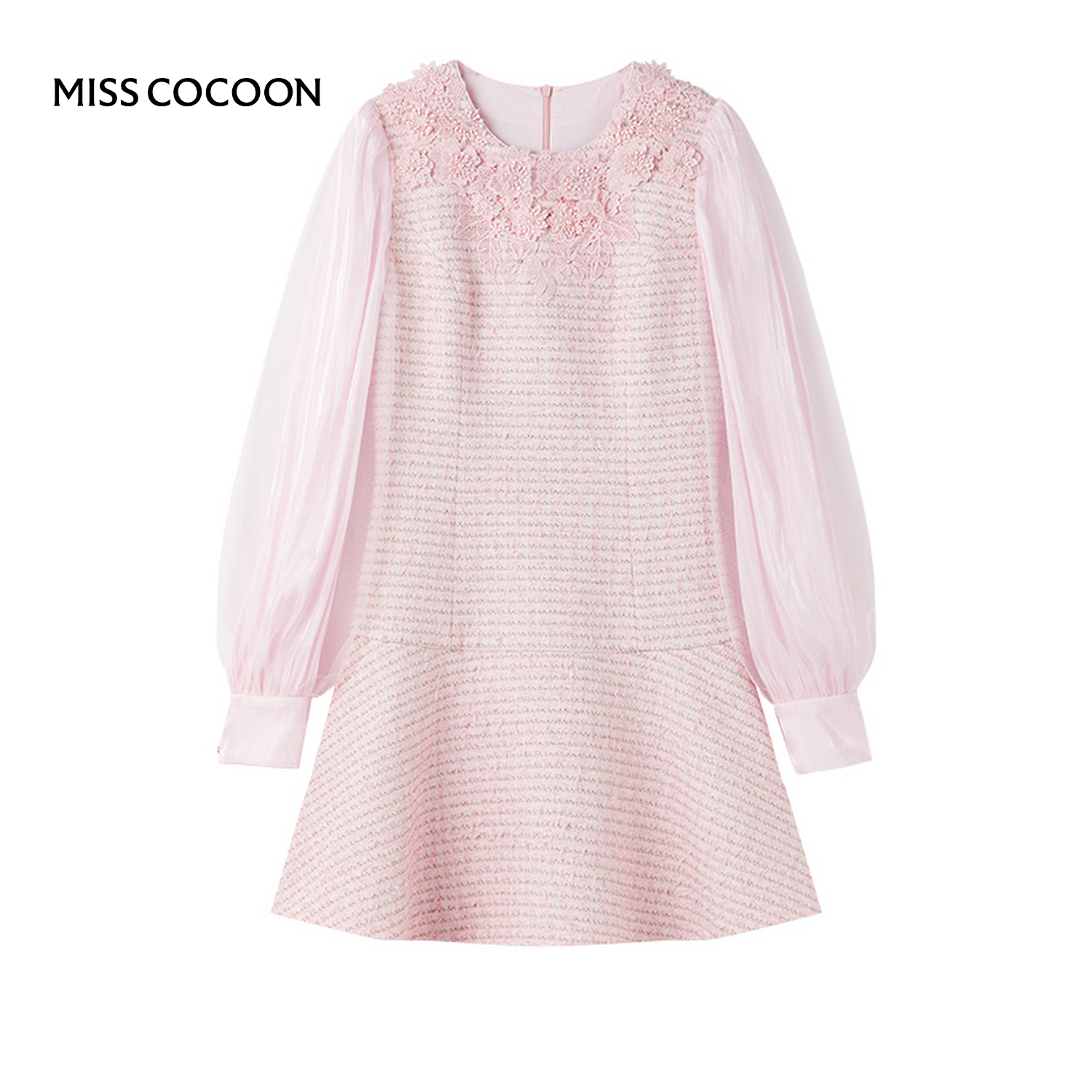 MISSCOCOON可可尼长袖裙子女2025秋季新款千金小香风拼接连衣裙