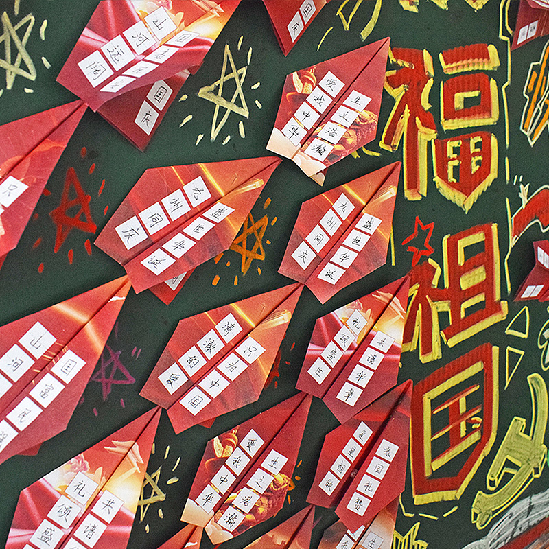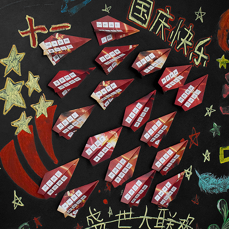 知砚喜迎国庆硬笔书法纸田字格喜庆大红色飞机折纸室内装饰布置祖国妈妈生日快乐展示纸钢笔毛笔手写心愿贺卡