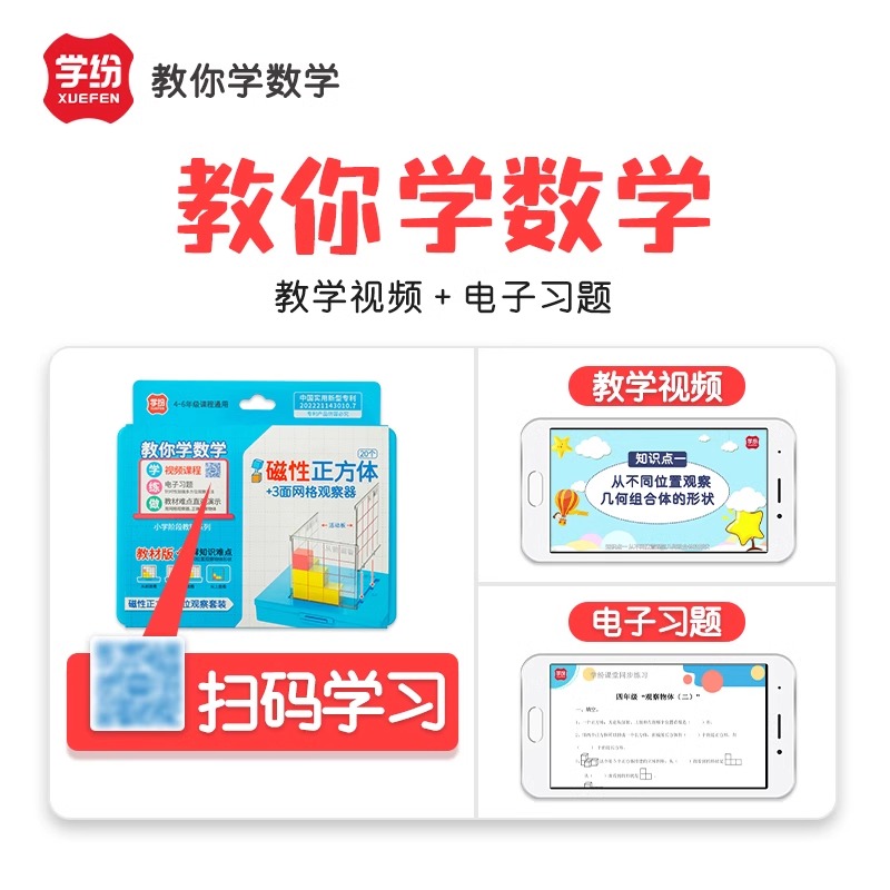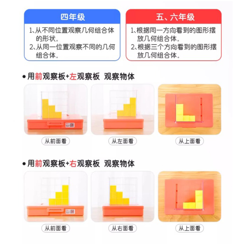 学纷磁性正方体方位观察器带网格套装四年级五年级下册数学学具立体图形小正方体立体模型6面磁性教学演示器