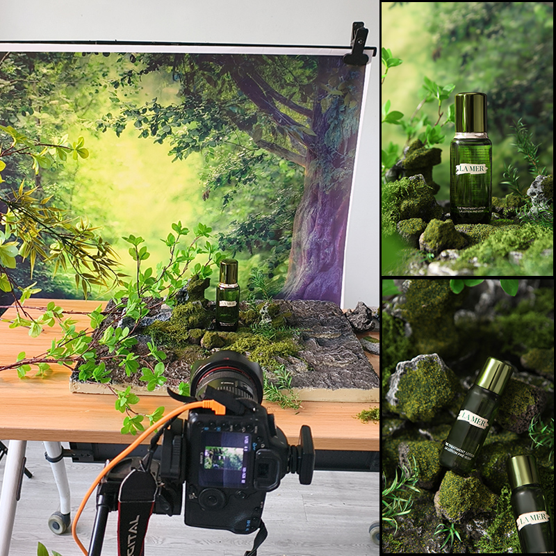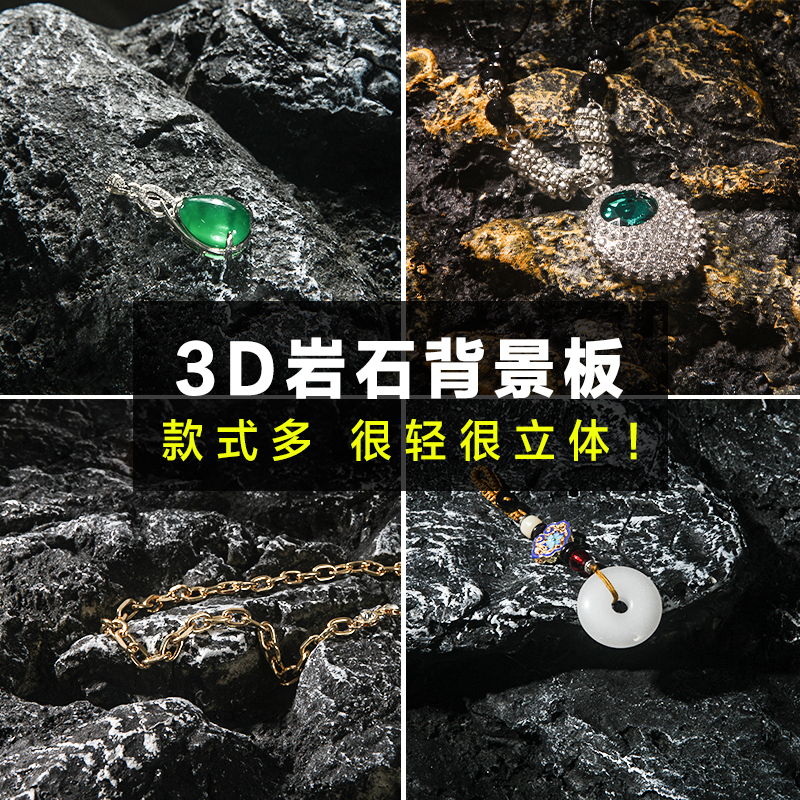 仿真石头苔藓拍照道具岩石假山摆件黑色拍摄背景板美妆护肤品珠宝首饰品静物产品拍摄装饰造景森林摄影背景布