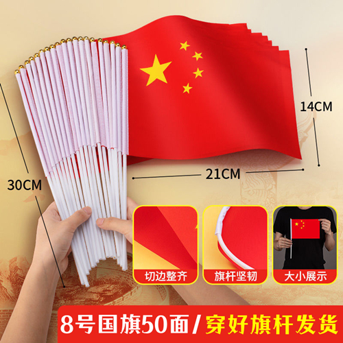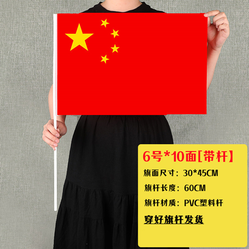 小红旗国庆节五星红旗7号8号手摇旗带旗杆庆典活动防水旗帜幼儿园