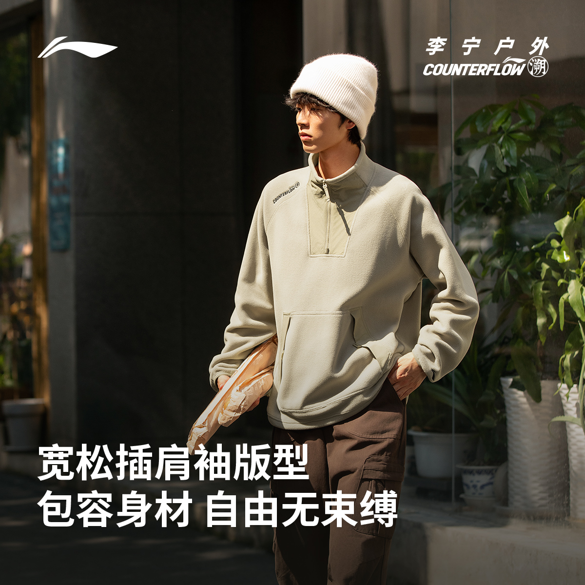 李宁户外CF溯丨套头摇粒绒上衣男士卫衣宽松加绒保暖冬季运动服