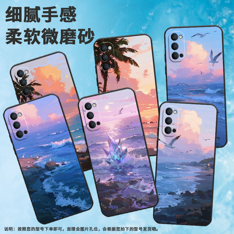 适用OPPOReno2Z手机壳10x黑色PCCM00商务0pp0RenoAce保护套Ace2海岸线风景Reno4Z高级PCKM70轻薄Reno5软壳